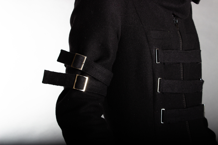 Черное пальто по рисунку заказчика.