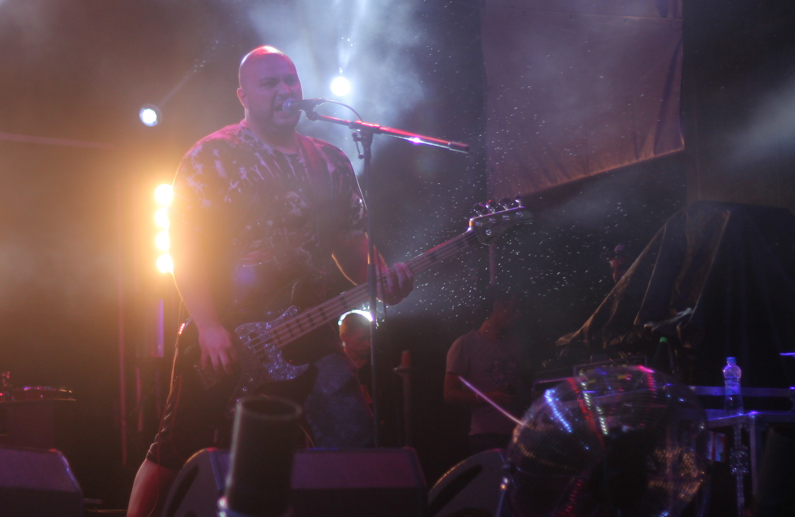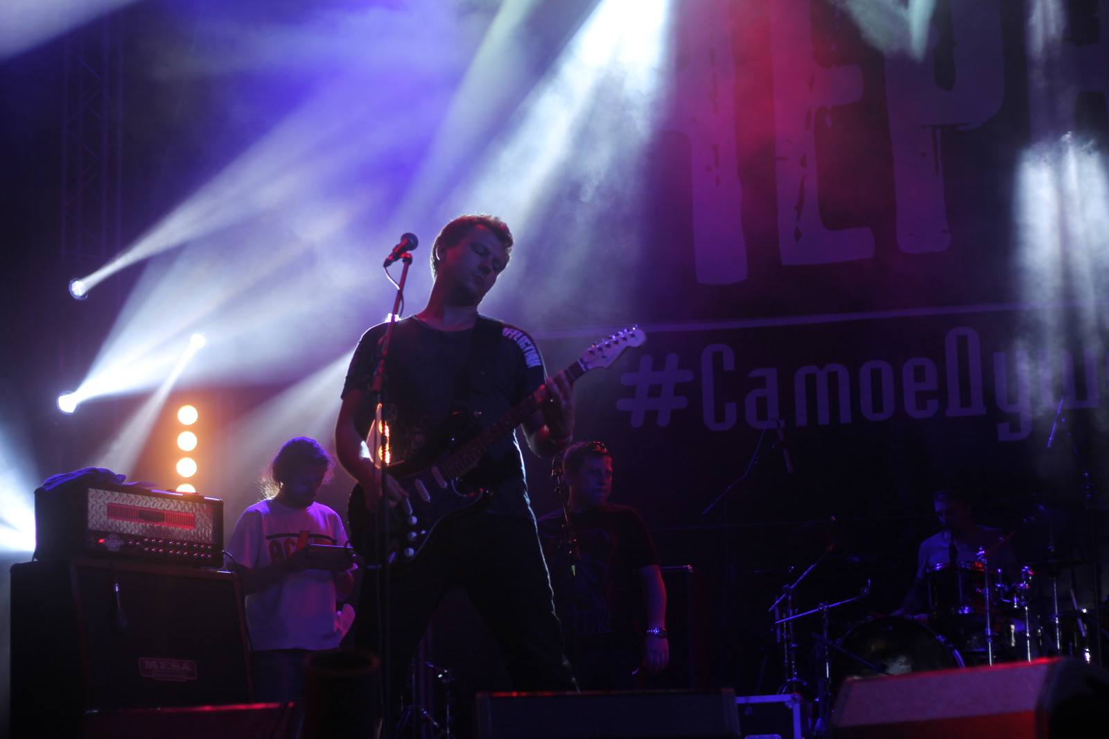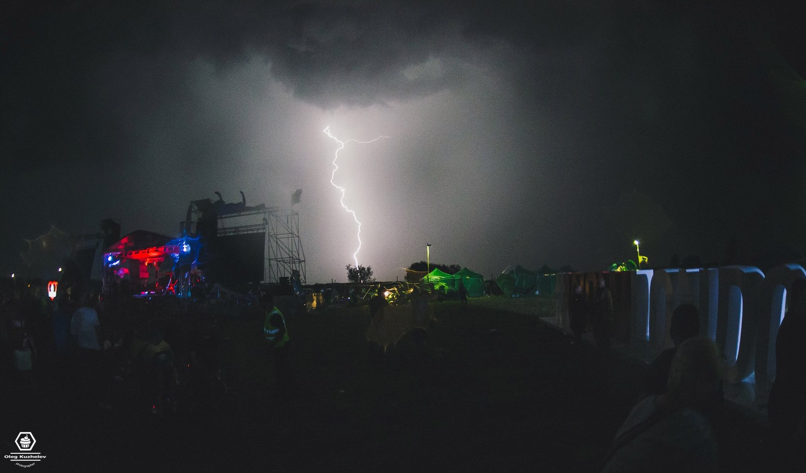 К сожалению со спецэффектами перестарались. Была настоящая буря. Били молнии, ветером гнуло мониторы, а палатки запускало в воздух. К тому же ливень с градом. Концерт пришлось спешно сворачивать, Чайфы так и не выступили.
