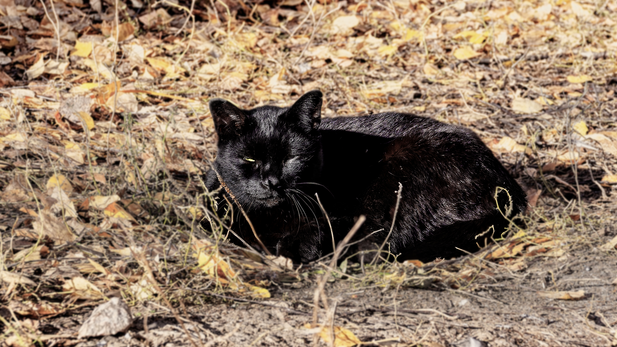 Город Лесной, осень, черный кот