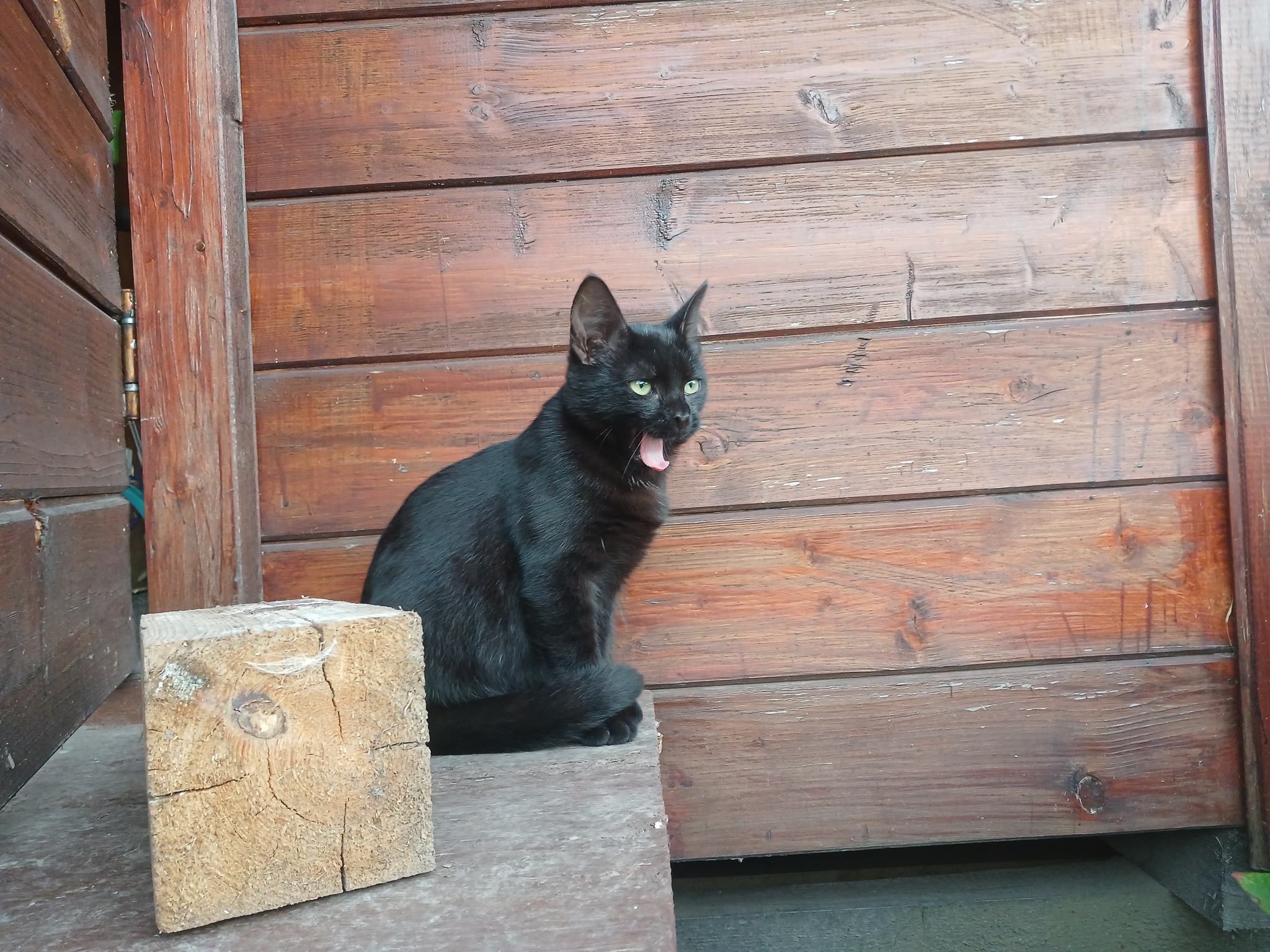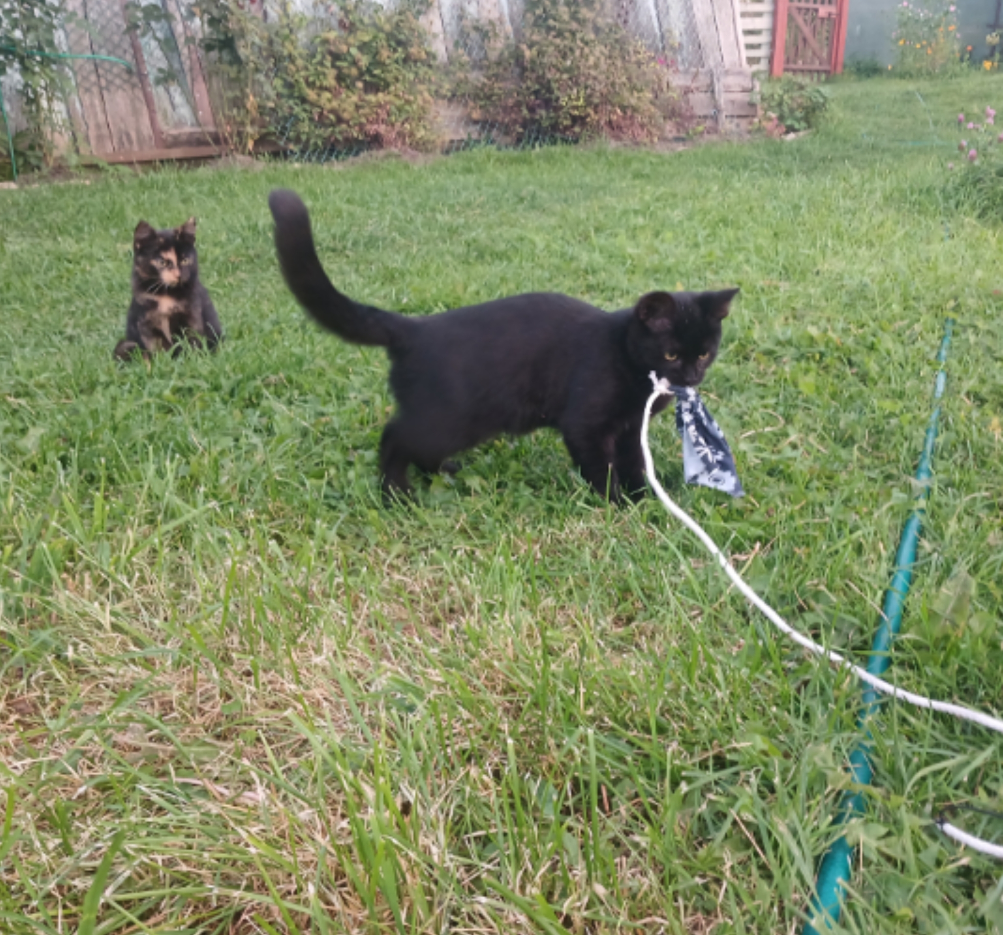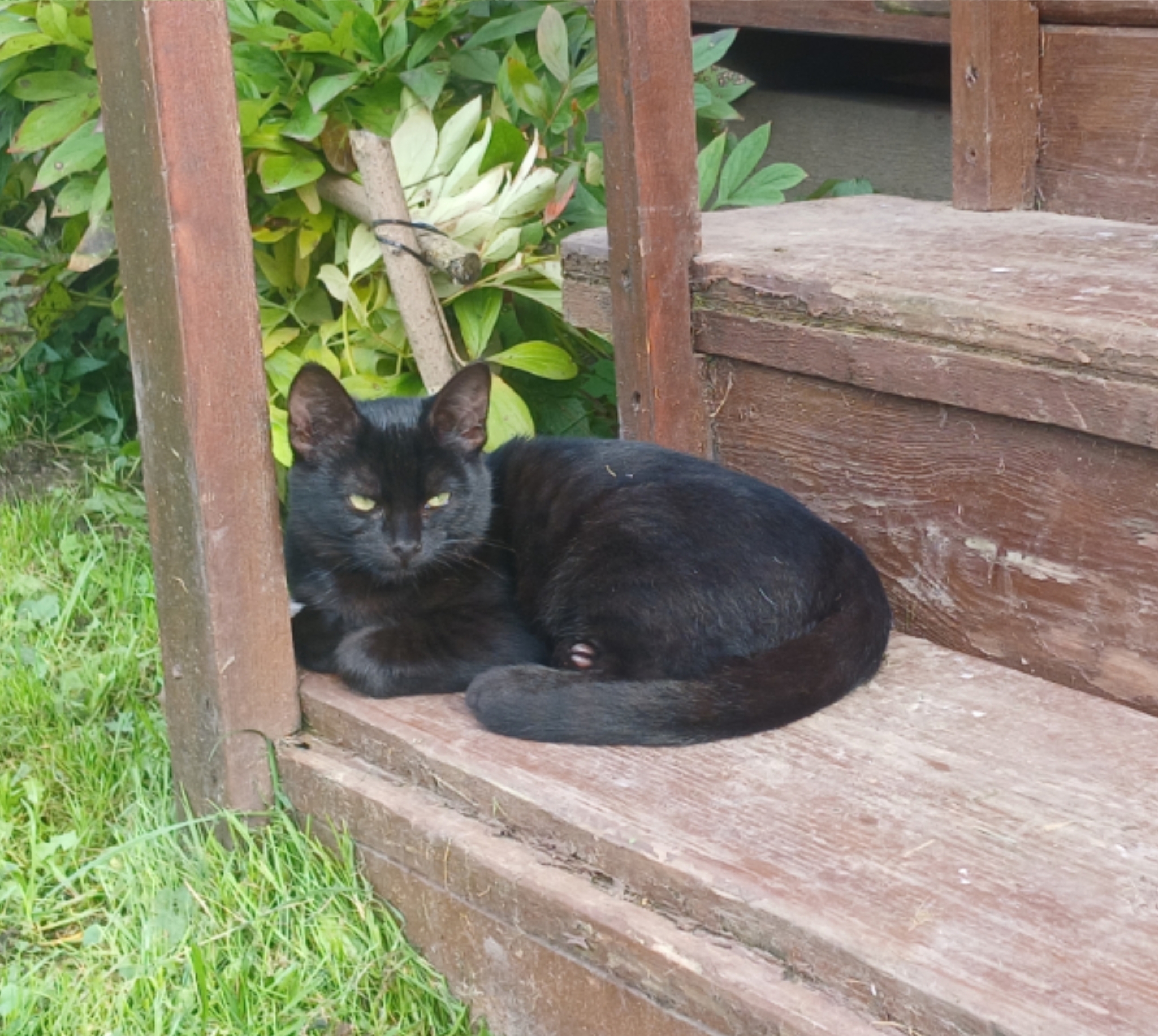 Один из диких детей кошки Пеньки, которых она привела к нам на участок в конце июля.