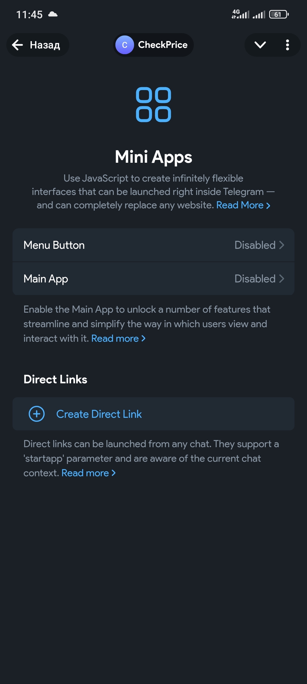 Дальше идём в Mini Apps.