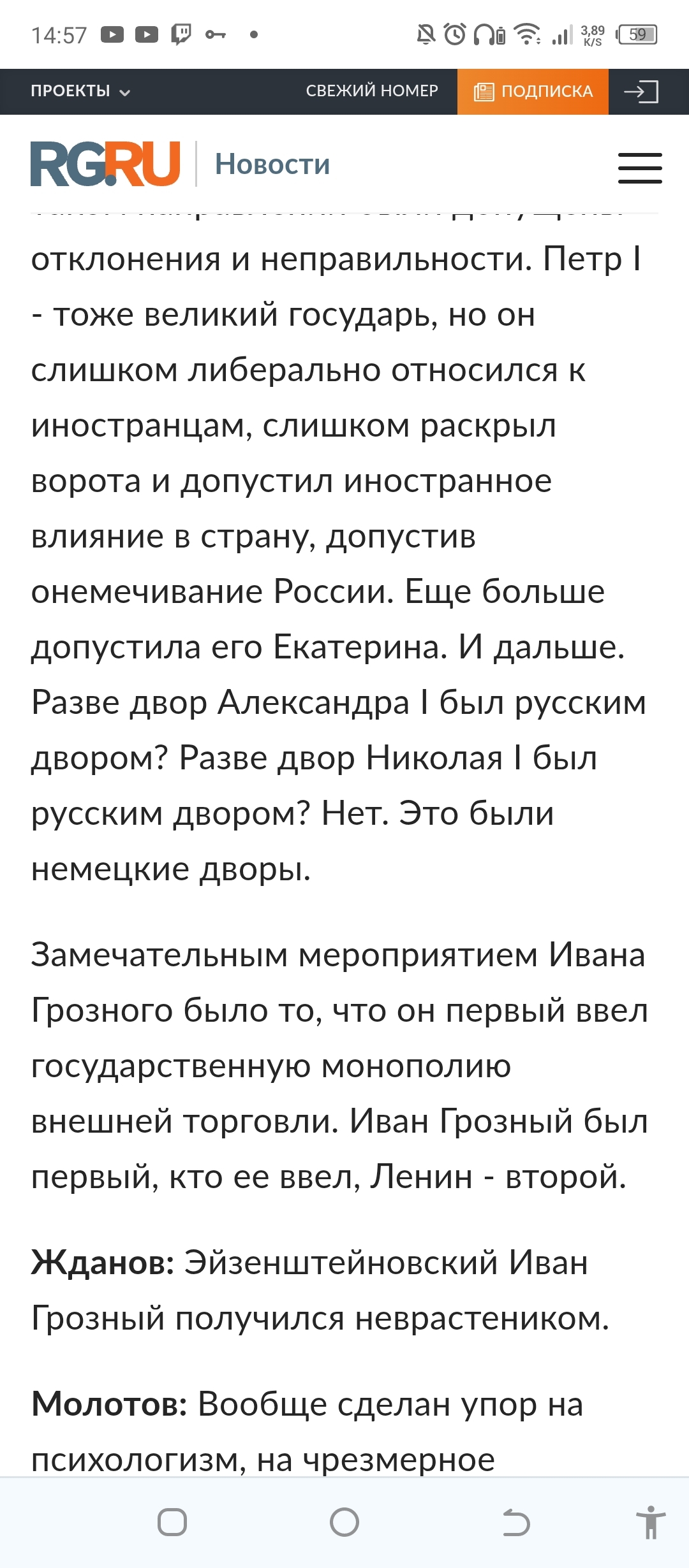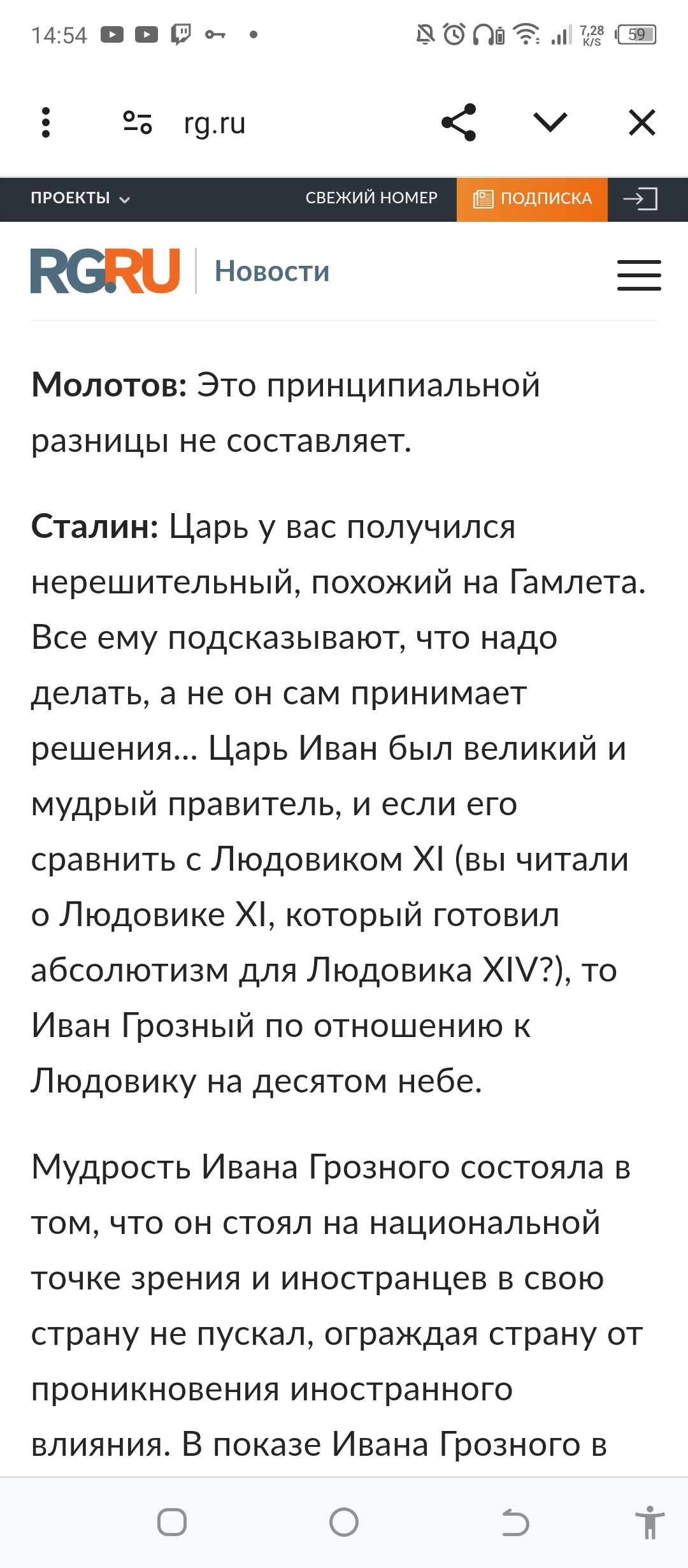 вот вам ниже парочку скриншотов слов Сталина о Иване Грозном и Петре 1. (Это из разговора Сталина с Эйзенштейном и Черкасовым о фильме "Иван Грозный")