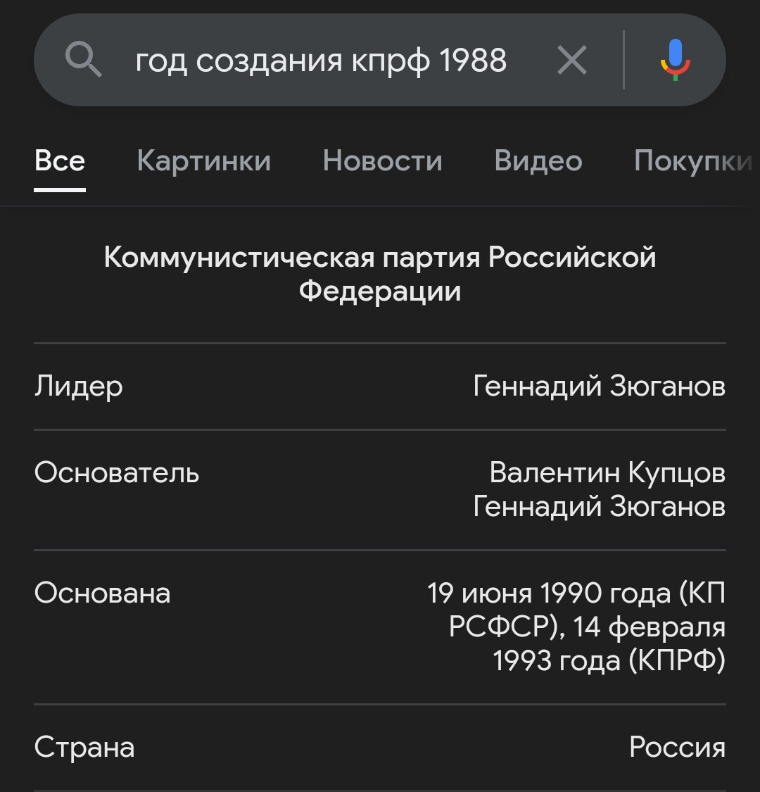 И почему год создания КПРФ 1988Нет. Она основана в 1993.
