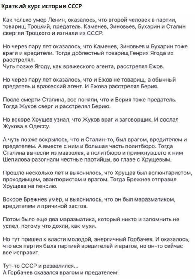 Название партии как бы намекает что он подразумевался хотя бы в партии. У вас всегда одинаковые отмазы. Каждый предыдущий генсек становится предателем что бы как то прекрыть дичь которую он творил. Говнострой оказывается еще не коммунизм а только строился и т.д. Единственное достижение совка это умение художественно врать и придумывать объяснения почему делали конфету а получалось всегда говно.