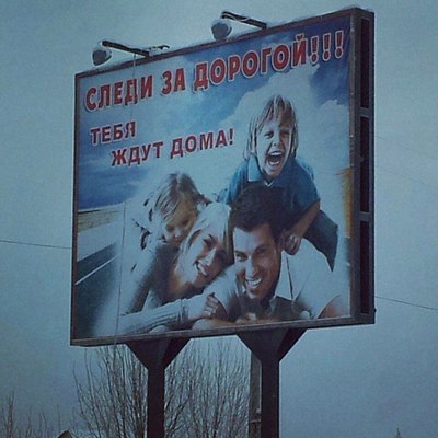 Отец едет по дороге - и видит данный баннер и вспоминает свою семью со своим присутствием. вполне логичная картина, вы перепутали рекламу. Правильная выше:)