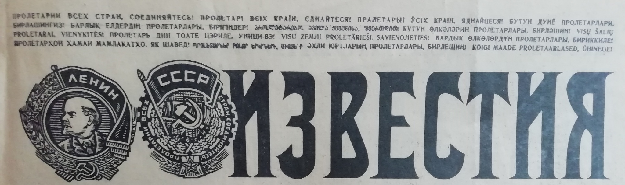 Там повторяются одни и те же слова на национальных языках всех республик Союза: "Пролетарии всех стран, соединяйтесь!" С какой-то горечью смотрел на эти строки, странно было видеть такой лозунг на русском, украинском, казахском, армянском, азербайджанском, грузинском и других языках в одной газете для одной страны.
