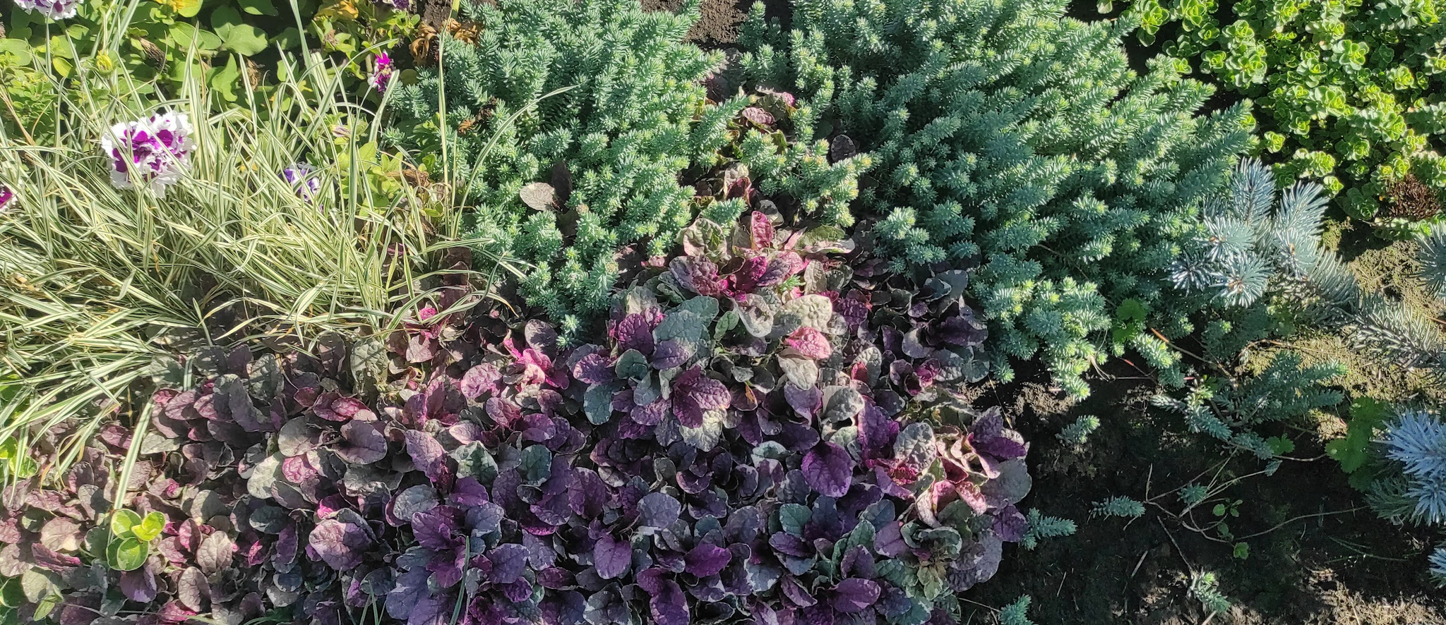 Покупала маленькие саженцы или растюхи 1-2-3 корешок с мыслью "разрастется". Соответственно, если сажать их редко, с учетом того, что они разрастутся, то между ними остается много пустой земли, которая тут же зарастает сорняком, который надо либо постоянно удалять, либо мульчировать, а такого количества мульчи весной нет, она накапливается постепенно. Что в итоге получилось (фото для примера): все травки смешались, налезли друг на друга. Очитки, что на фото - в свободной форме распространения вообще зло. Приживается даже малюсенький кусочек без корней и воды. После цветения остаются некрасивые сухие палки, которые нужно убирать, а это трудоемко.