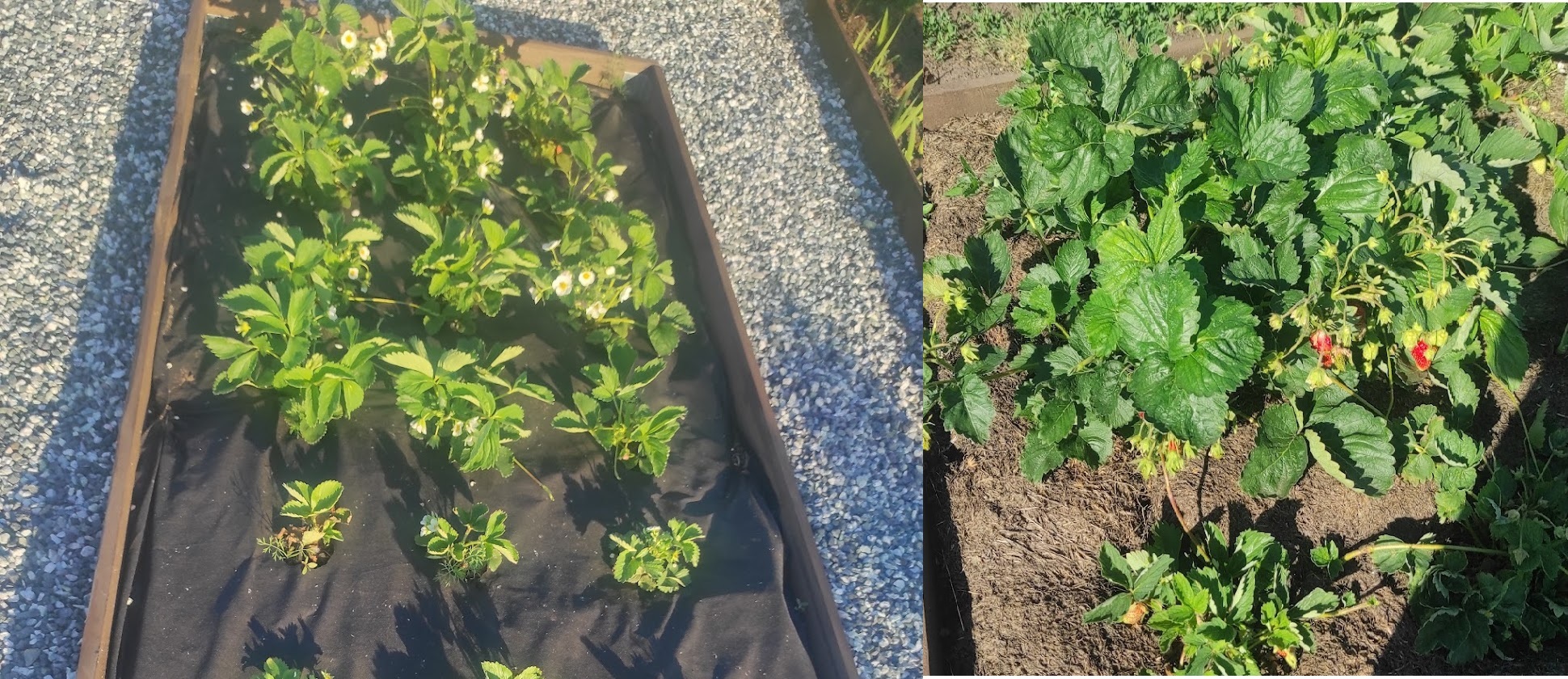 У каждого варианта есть свои плюсы и минусы. Безусловным плюсом геотекстиля оказалась обработка после сбора урожая. При такой посадке обработка грядки заняла у меня минут 15-20. Да и ягодки растут чистые, смотрится замечательно. Однако при таком способе посадки невозможно укоренить усы и еще непонятно каким образом можно подсыпать в грядку того же перегноя.