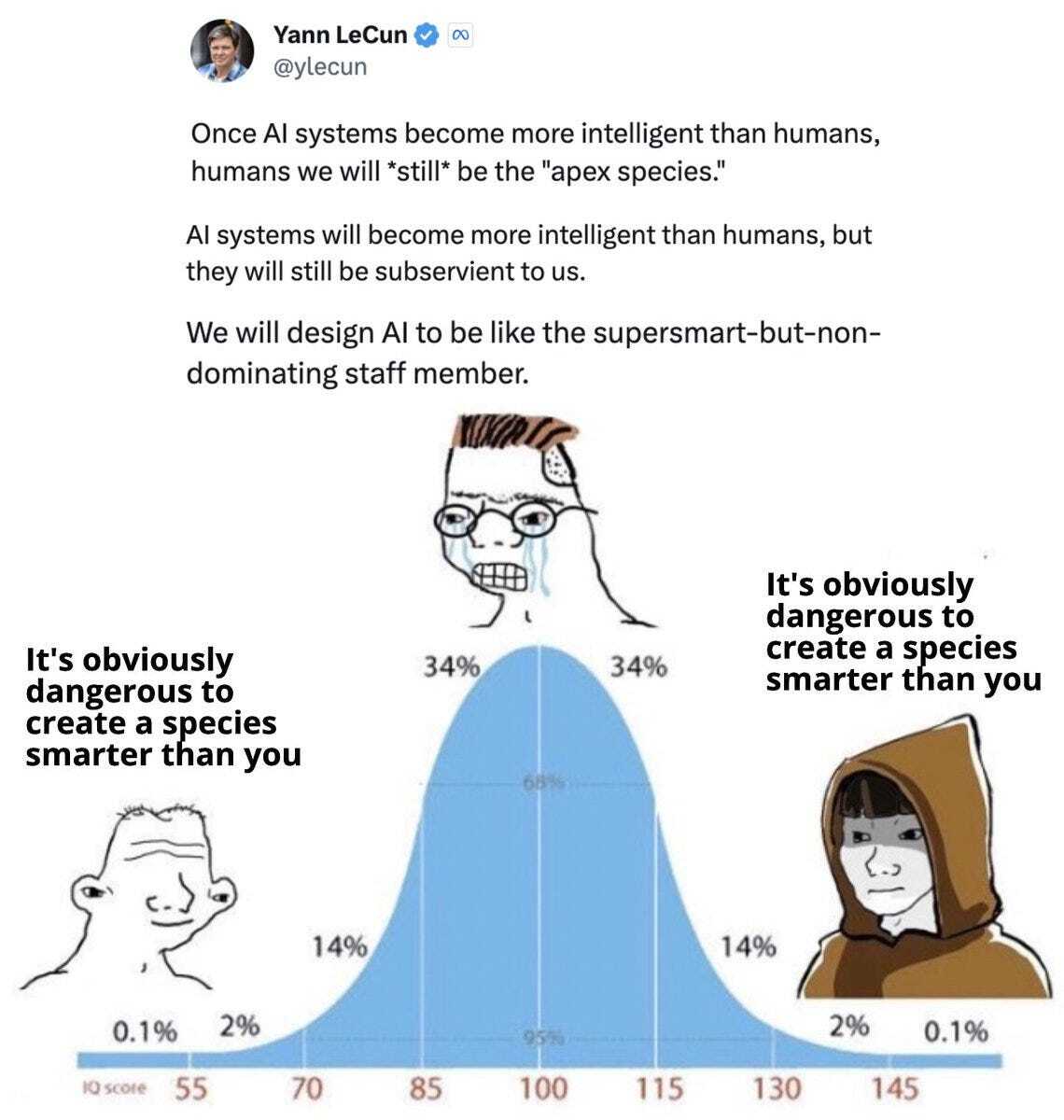 🐌 Бонусом добавлю еще Яна Лекуна, которого недавно «ушли» с должности главы AI-подразделения запрещенной Меты Цукерберга – можете сами попробовать подобрать название для его подхода на базе прикрепленной картинки. «Просто наивный оптимизм»?