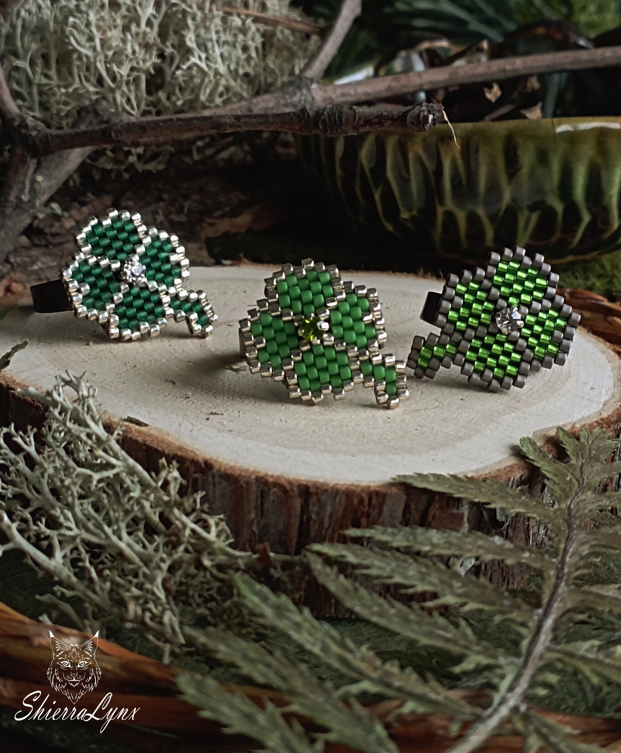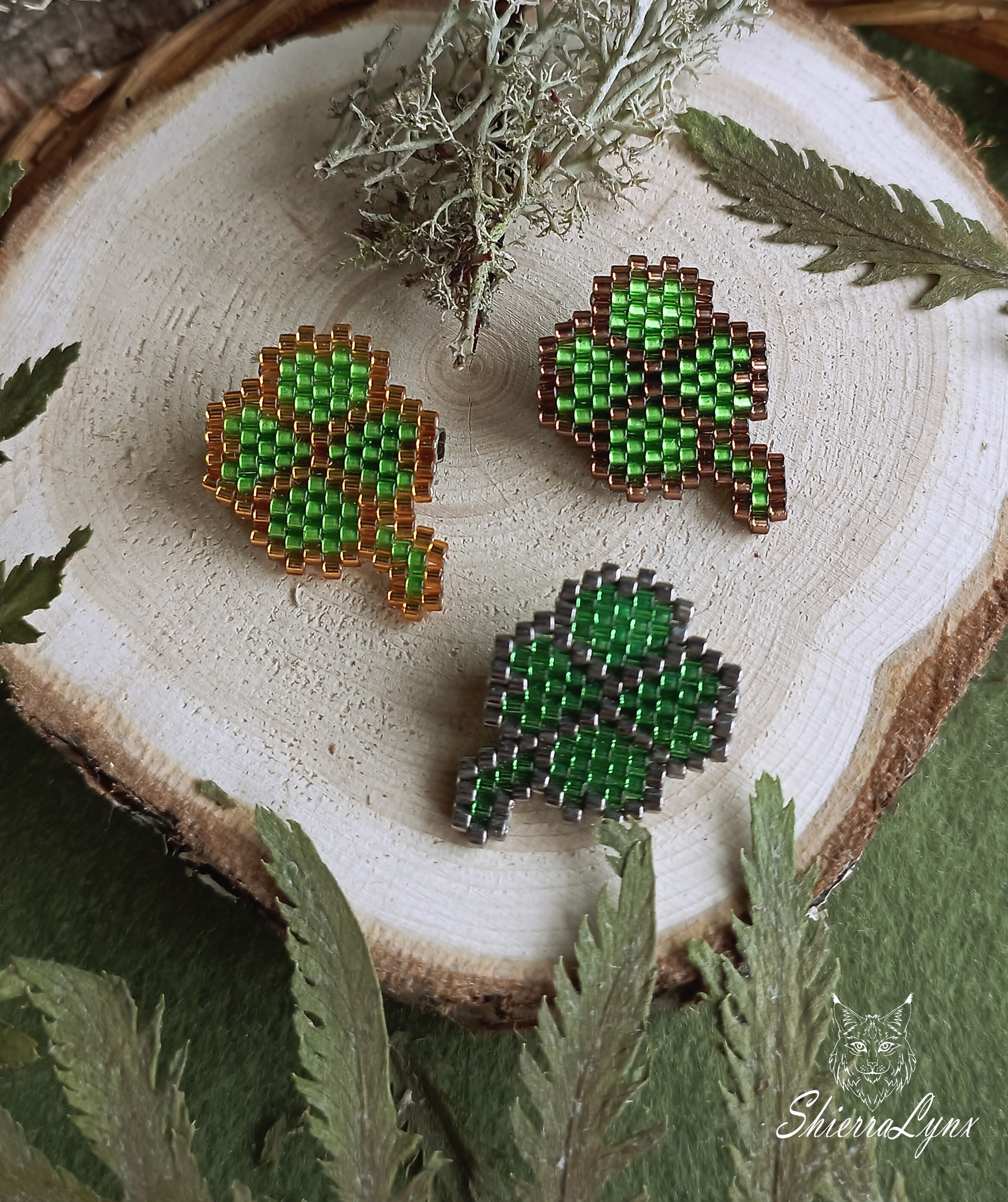 Размер шемрока около 2см, сделано в технике "кирпичное плетение" из японского бисера Delica.