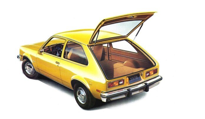 Представленный в 1976 году двухдверный хэтчбек, можно было приобрести в нескольких комплектациях, включая Coupe, Sport Coupe, Rally Coupe, и роскошный Woody с виниловыми наклейками под дерево. Младшая комплектация отличалась окрашенными в цвет кузова бамперами, отсутствием заднего сиденья и дверцы перчаточного ящика, дешевым черным салоном с картонными дверными картами и ценой в 2899 долларов. Стоимость более традиционных моделей Chevette начинается от 3,098 долларов. В 1978 году был представлен четырехдверный хэтчбек, и вскоре на его долю приходилась половина продаж.