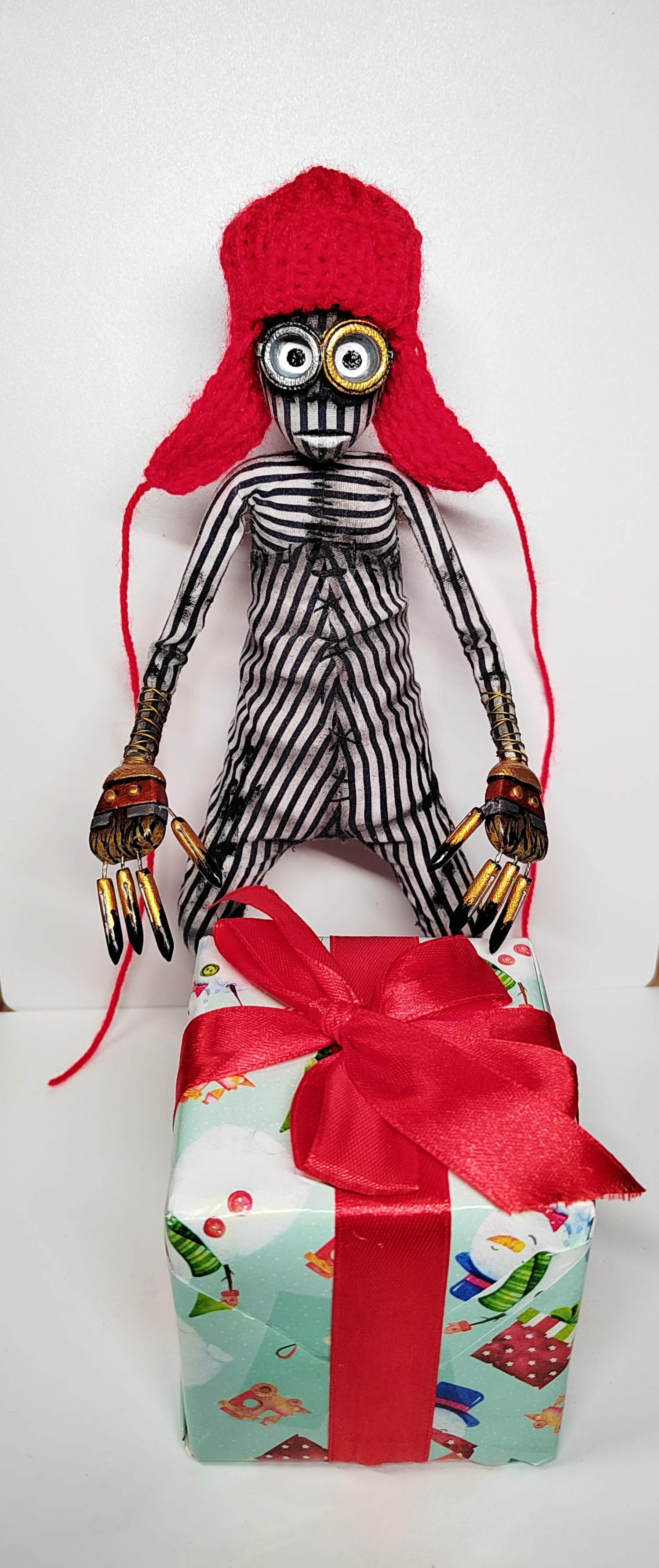 Выполнен в смешанной технике. Рост 23см. На шее носит ключ. Части тела из полимерной глины. Материал: проволока, пряжа, синтепон, полимерная глина, акрил, пастель лак, ткань. Фигурка подвижная.