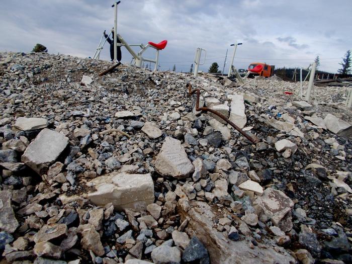 Жители пгт. Белогорск решили проверить, какие работы были проведены по благоустройству поселка на сумму в 2,1 миллиона рублей. В прошлом году им поставили спортивные тренажеры на площадке. По сметам там должно быть резиновое покрытие, по факту там просто грязь и строительный мусор. Но на сайте администрации есть фотография, где резиновое покрытие красиво нарисовано.