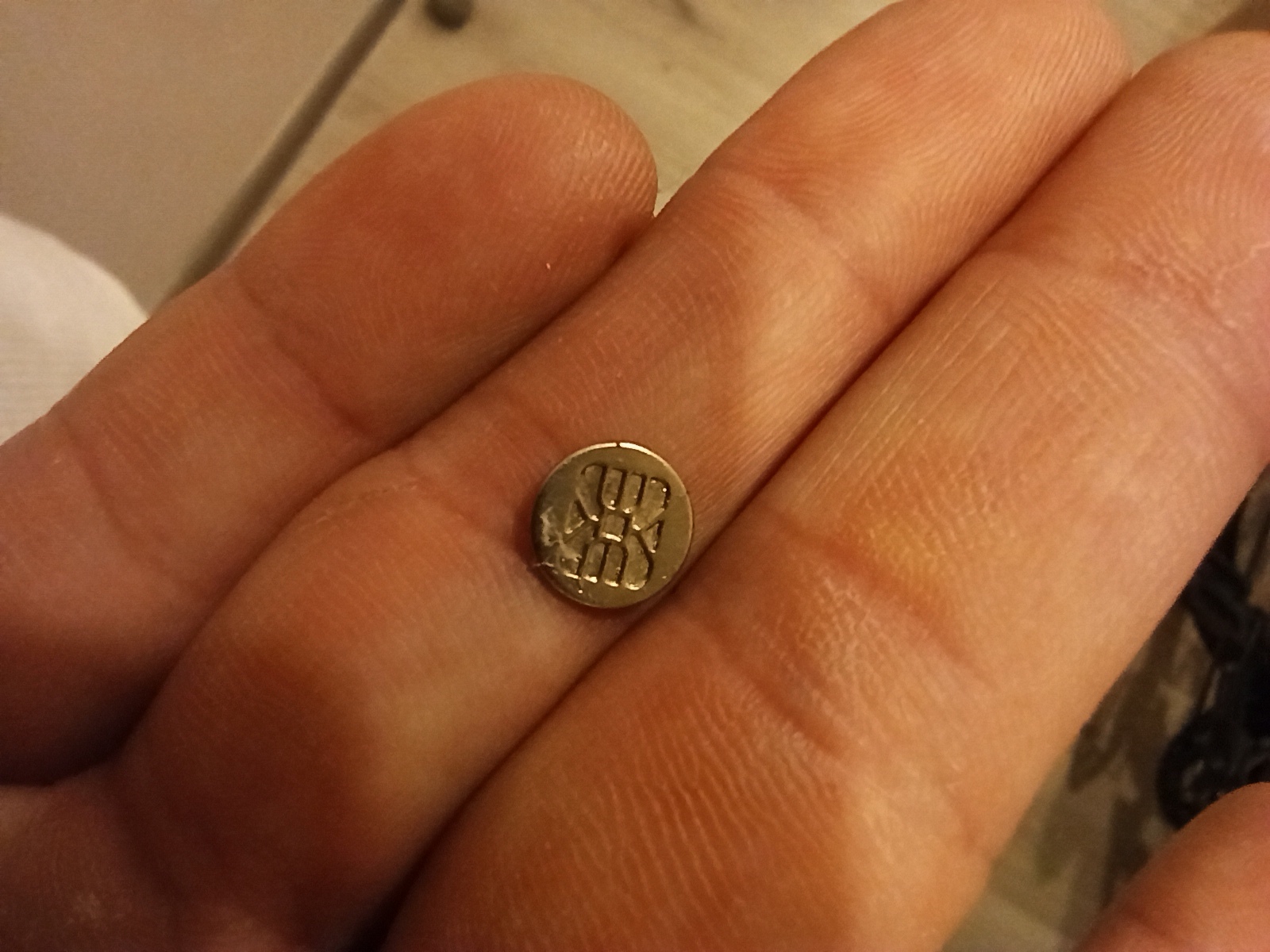 Под ней скрывалась металлическая маленькая пиздюлинка диаметром 6-7мм похожая на чип
