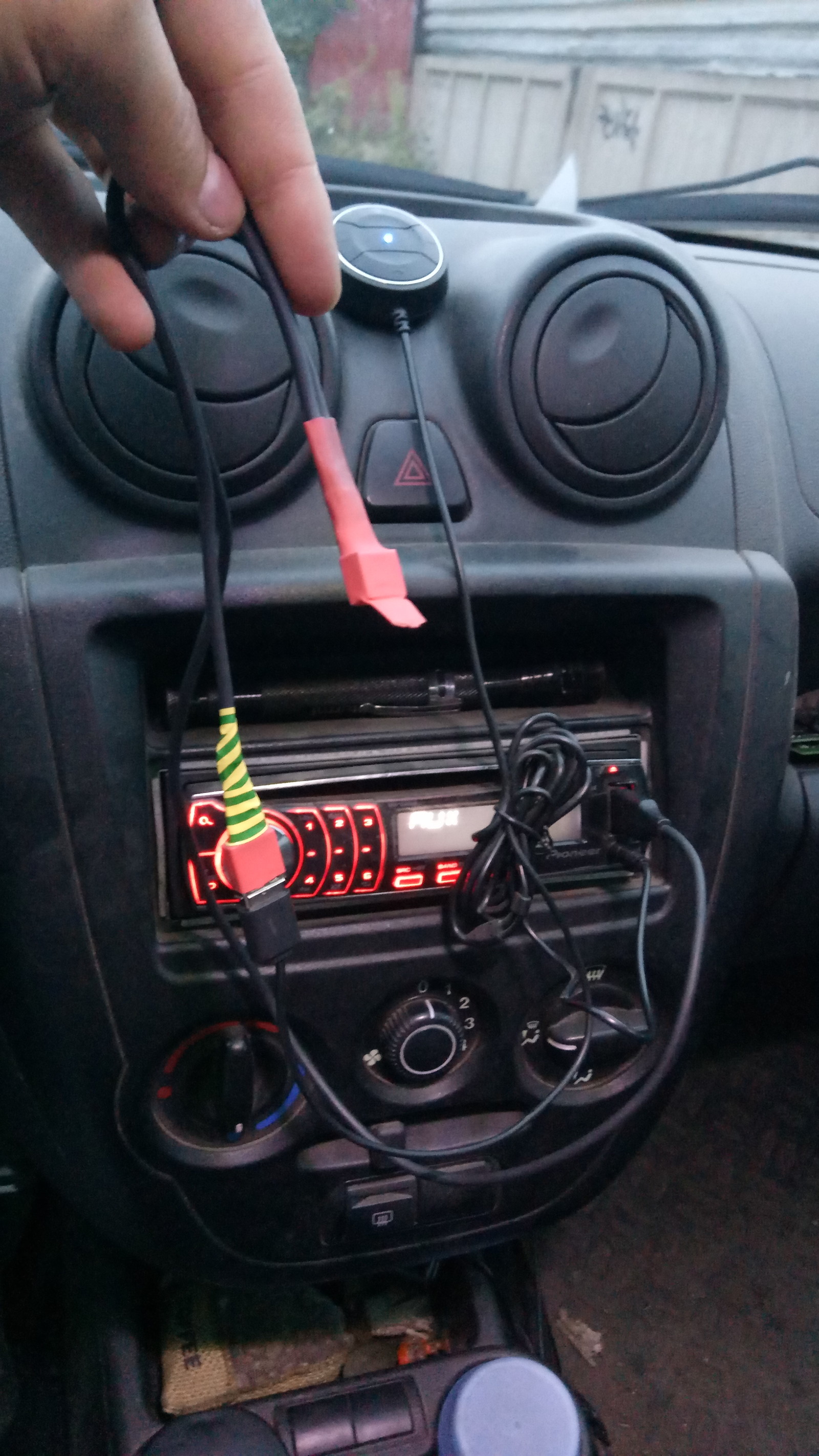 У меня в машинке была неплохая магнитола которая меня устраивала всем, кроме того что в ней не хватало синезуба. Я решил исправить этот недостаток купив вот такую ерунду. Но недостаток этого чудесного поделия китайских мастеров заключался в том что в паузах между треками или при разговоре было слышно очень сильные наводки из-за нестабильного тока в бортовой сети автомобиля. Спасибо @razudens подсказал как это исправить: нужно было всего лишь купить DC:DC преобразователь и воткнуть его между источником питания и синезубом чтобы он выпрямлял ток.