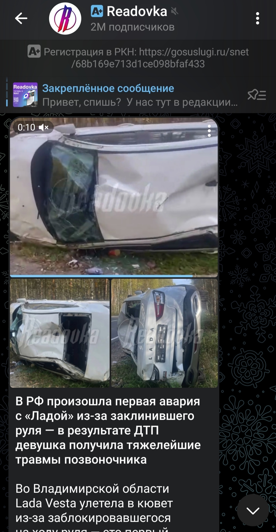 В посте источник был указан ТГ канал Readovka, который осветил эту ситуацию, к тому же имеет регистрацию в РКН.
