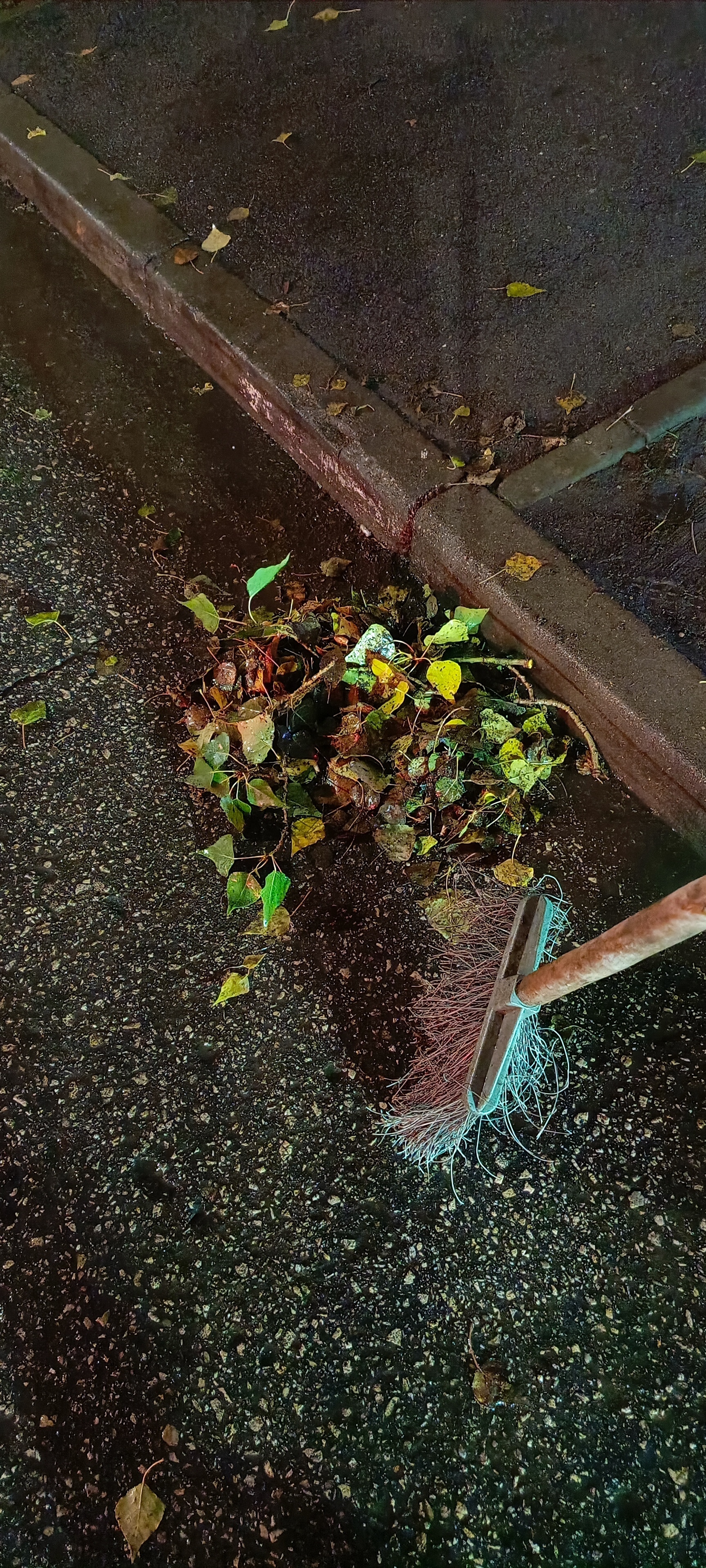 17:00-18.30-19:00 Лечу домой, быстренько ужинаю, экипируюсь на уборку города. Так как мне ничего кроме метлы не выдали - пока что купил только перчатки и дождевик. Надеюсь когда проявлю себя, дадут жёлтую жилетку. А потом и на нормальную лопату накоплю и приобрету( для удобства работы, а то на всю базу одна широкая лопата снеговая-ей удобно кучки с мусором собирать, лучше и легче чем совковой, ее берет самый опытный боец) и ещё галоши в чижике за 800р(подорожали сильно)