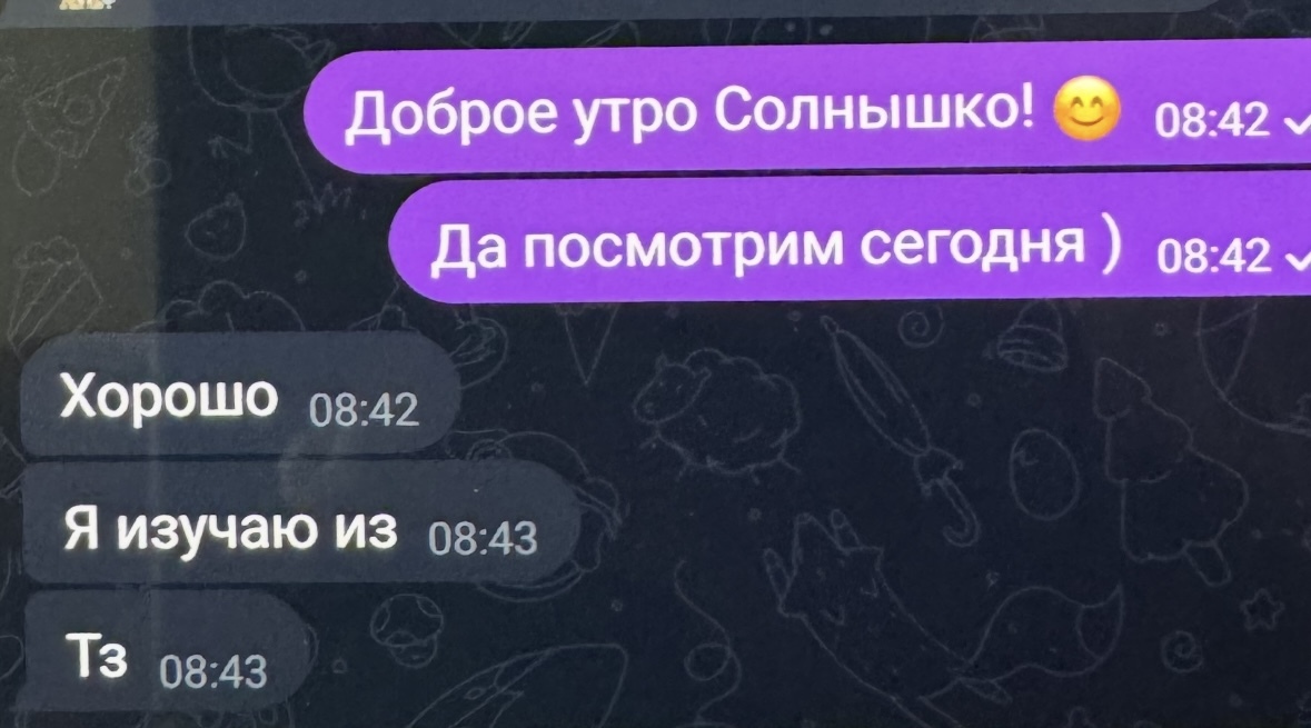 Также она ему написывает как день провела, что ела, куда ехала, фотки шлет, а он ей, с семьей своей он так не общается, ни разу не слышала что бы к ребенку он применил какое-то ласковое слово. Так вот суть вопроса, как вы считаете нормальное общение у них, если возможно сделайте голосование, а то наши семьи не могут вразумить человека, что такое общение неправильное, аморальное и надо ставить рамки, а он говорит такая манера общения у неё и типа ничего тут такого. Телефон после того как я это обнаружила от меня заблокировал, я поставила условие либо это недоразумение «сестринское» или семья. Ходит думает, говорит я дружу и работаю и все, прекращать не собираюсь, а телефон это мое личное. Мой муж ооочень любит читать пикабу, привет тебе happpybobr, посмотрим что скажут многочисленные пользователи пикабушечки)) Всем добра и адекватного бобра, а не такого как у меня…