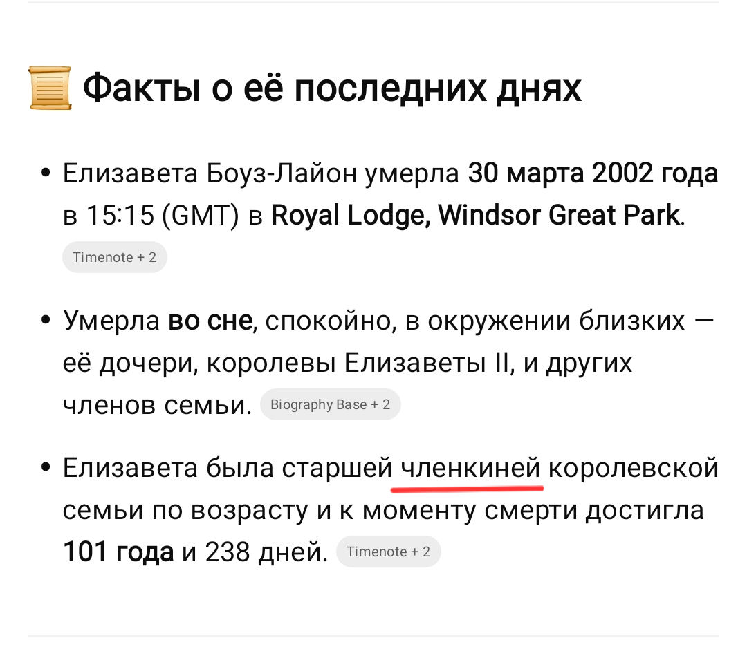 2168 ETCanway 24 дня назад Специфический юмор Членкиня4 Собирал информацию о БКС. Решил и в ChatGPT узнать немного о Елизавете Боуз-Лайон: Членкиня, мать вашу. Королева-мать - ЧЛЕНКИНЯ. И смех и грех) уже и там встретил) [моё] Юмор Феминитивы Русский язык Новояз Королева Елизавета II Королева мать Королевская семья ChatGPT Нейронные сети Волна постов 217 124 3 2 2 1 Ещё 1