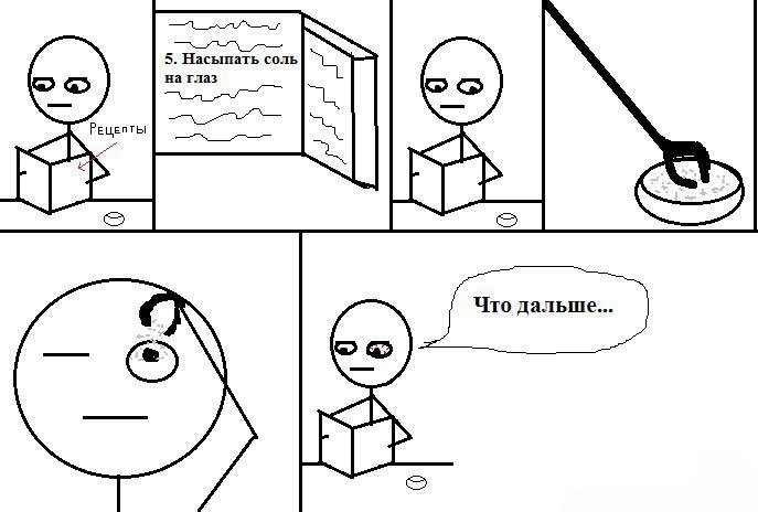 Ну или я, может, тех. карты не те смотрел. Но серьезно. Если у большинства людей нет проблем с готовкой простого супа, а у кого-то другого - есть проблемы с определением готовности продукта или количества приправы "по вкусу", то это не проблема плохого рецепта, а только неопытность человека, который взял блюдо не по своим возможностям. Это нормально, когда в первый раз что-то не получается. Когда первые несколько раз недоваришь мясо, уже поймешь, сколько надо варить конкретно твое мясо на конкретно твоей плите и в конкретно твоей кастрюле и как оно должно чувствоваться конкретно твоей вилкой и твоей рукой.