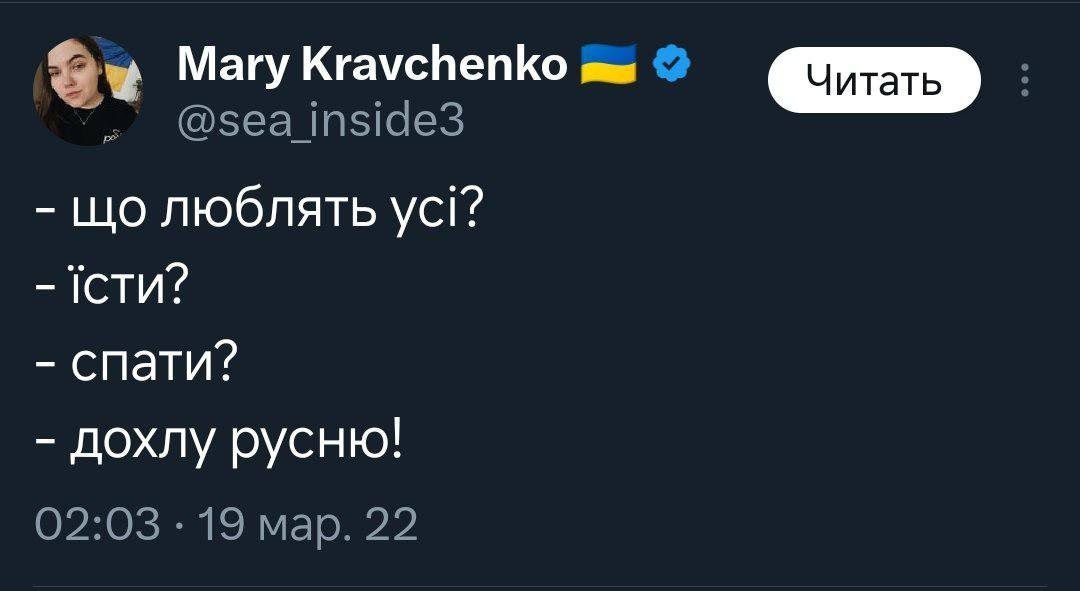 6606 Anyoneyouknow Чому3 11 месяцев назад 3 года спустя Честно спизжено из телеги Политика Telegram (ссылка) Скриншот X (Twitter) Украина Россия и Украина Мат Русофобия Без перевода 409 68 62 36 3 Ещё 0