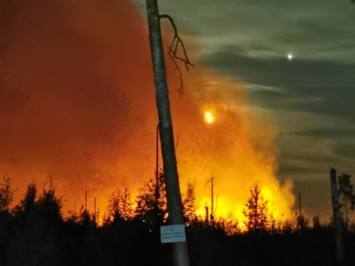 Ночной пожар с ветром перекинувшийся со стороны окского заповедника.