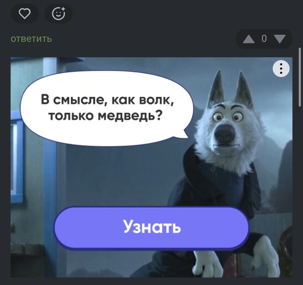0 dnotelekomros Что блт это за чушь? 1 месяц назад Я конечно разной рекламы видел, но что вот это среди коментов проскакивает? Прям какая то полная чушь. Пикабу Реклама Посты на Пикабу Бред Нововведение Ещё 0