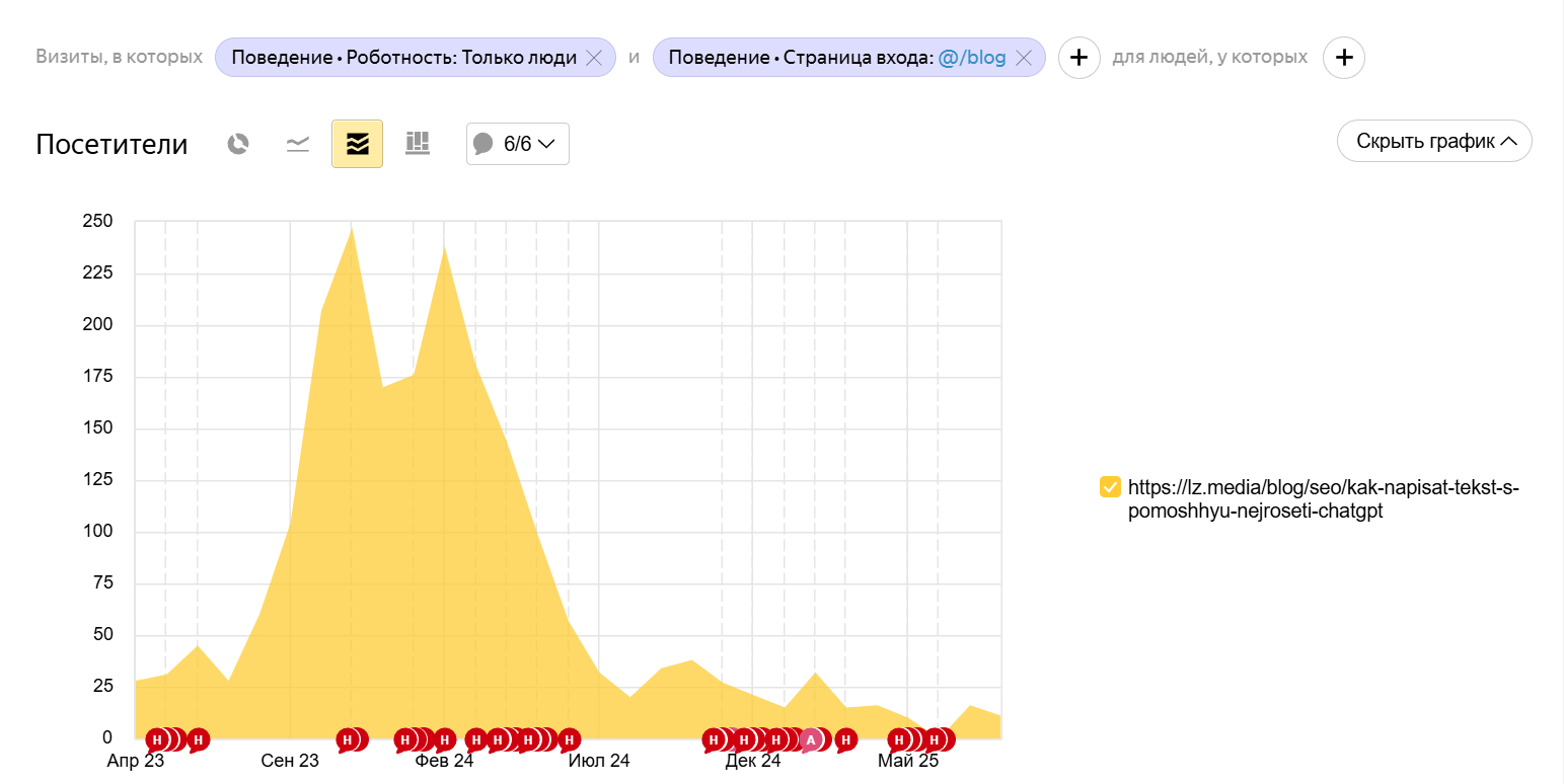 После всех рассуждений самое время ответить на вопрос из названия статьи. Если вы один раз сделали текст с помощью ИИ и опубликовали его, ничего страшного не случится. Более того, в краткосрочной перспективе это может дать хороший результат. У меня был такой опыт: в 2023 году, когда ChatGPT только стал популярным, в качестве эксперимента я публиковала статью про то, как писать тексты с нейросетями. Фишка заключалась в том, что я полностью сгенерировала материал с ИИ: структура, текст, иллюстрации.