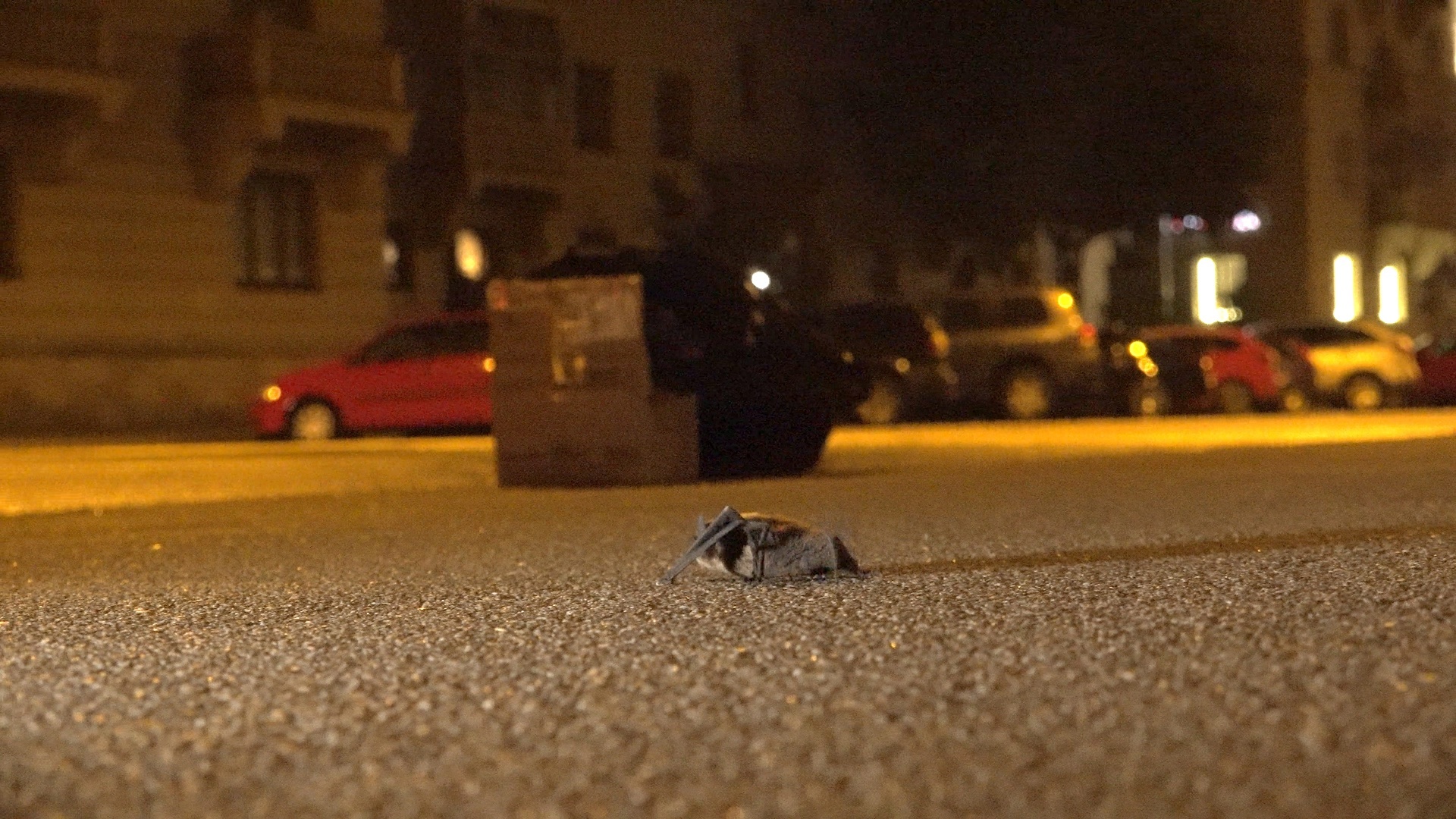Оказавшись на земле, животное не способно взлететь – из-за своих больших перепончатых крыльев. Мышке необходимо подняться на какую-либо возвышенность, но из-за того, что в городе кругом гладкие каменные поверхности, это не всегда возможно. А оставаться на дороге или тротуаре для неё опасно. Если Вы нашли летучую мышь на проезжей части, для безопасности наденьте перчатки и посадите её на дерево.