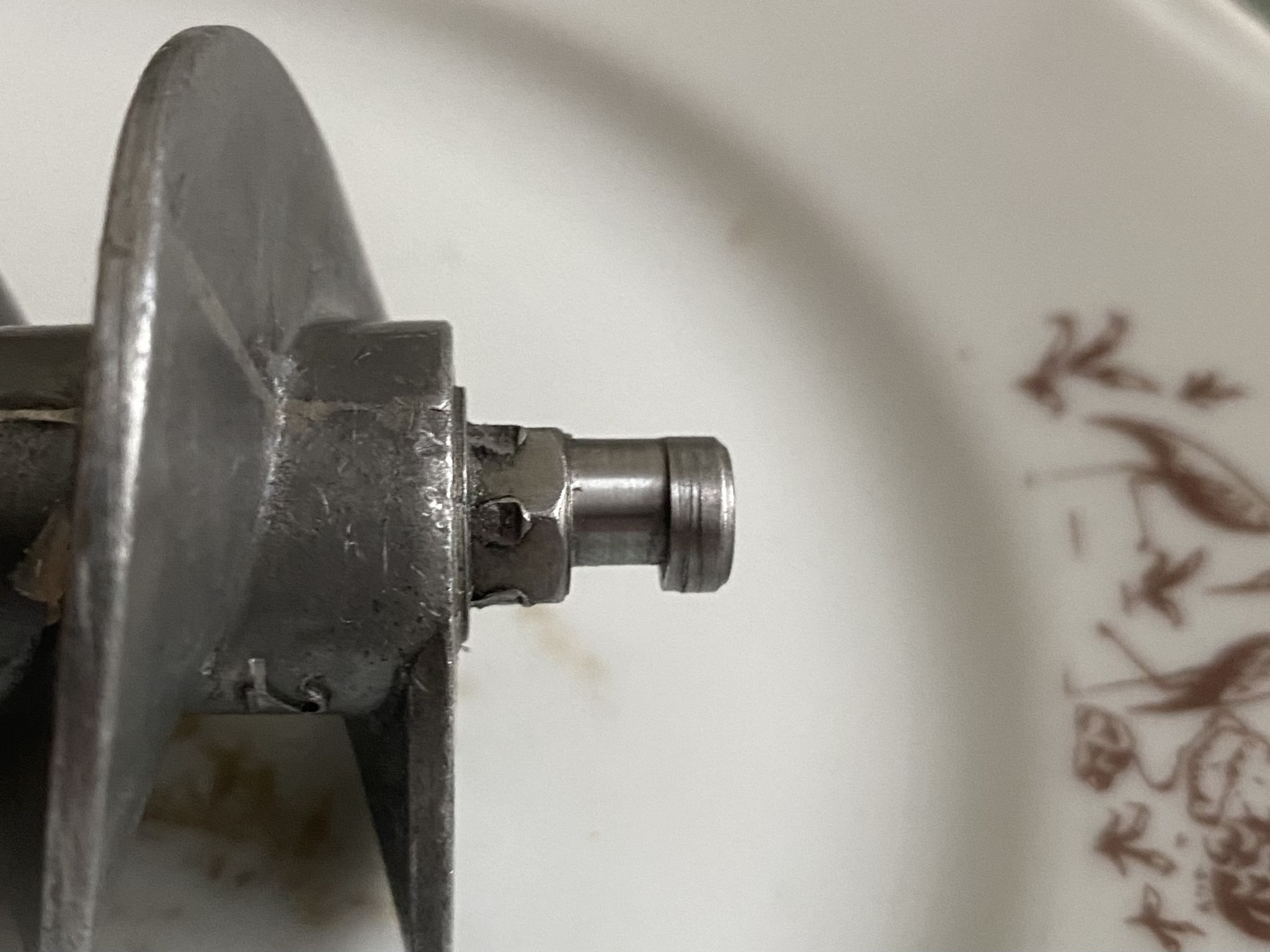 Видна выработка оси в месте соприкосновения с решёткой мясорубки.