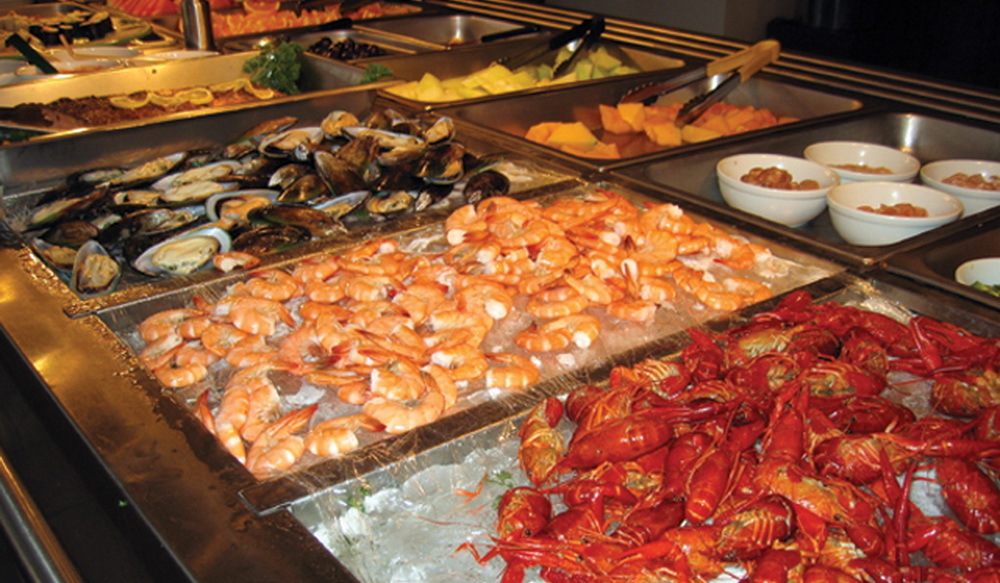 Как правило это азиатская кухня на американский лад. Но оно того стоит. За десятку поесть от пуза лапши, креветок, суши и много чего еще – бесценно. Также, например, есть сеть пиццерий, которые предлагают шведский стол за ту же десятку. То есть шведский стол, но из пицц. Тоже прикольно.