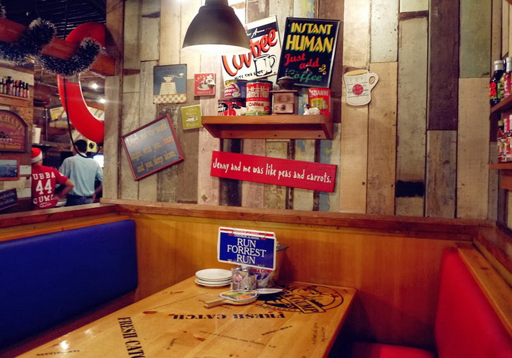 Вот в США на самом деле существует сеть таких ресторанов Bubba&Gump. Каждый ресторан выполнен в стиле фильма. Интерьер расписан фразами из фильма, такими как «Mama says…».