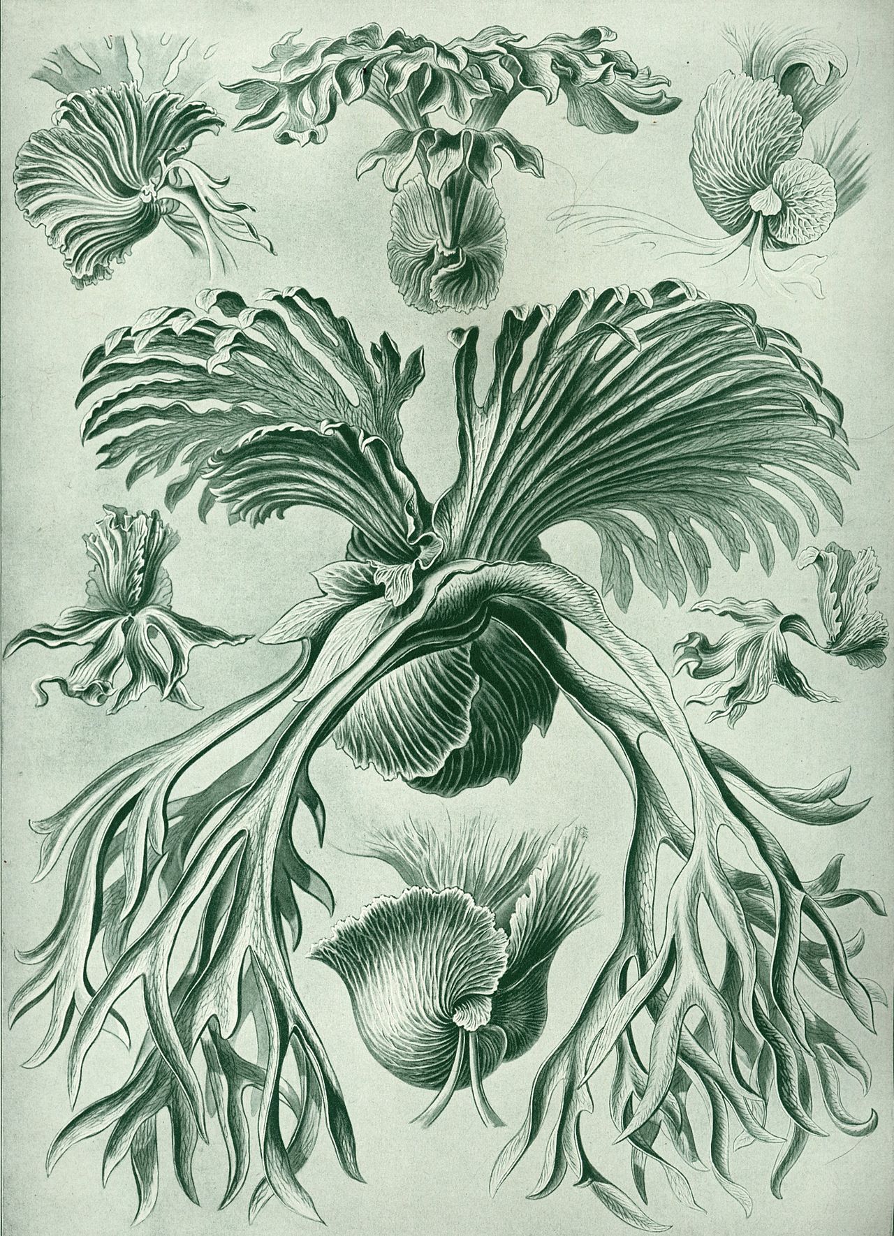 У Платицериума есть два типа листьев: разветвленные, похожие на рога, для фотосинтеза и размножения, и цельные округлые так же для фотосинтеза.