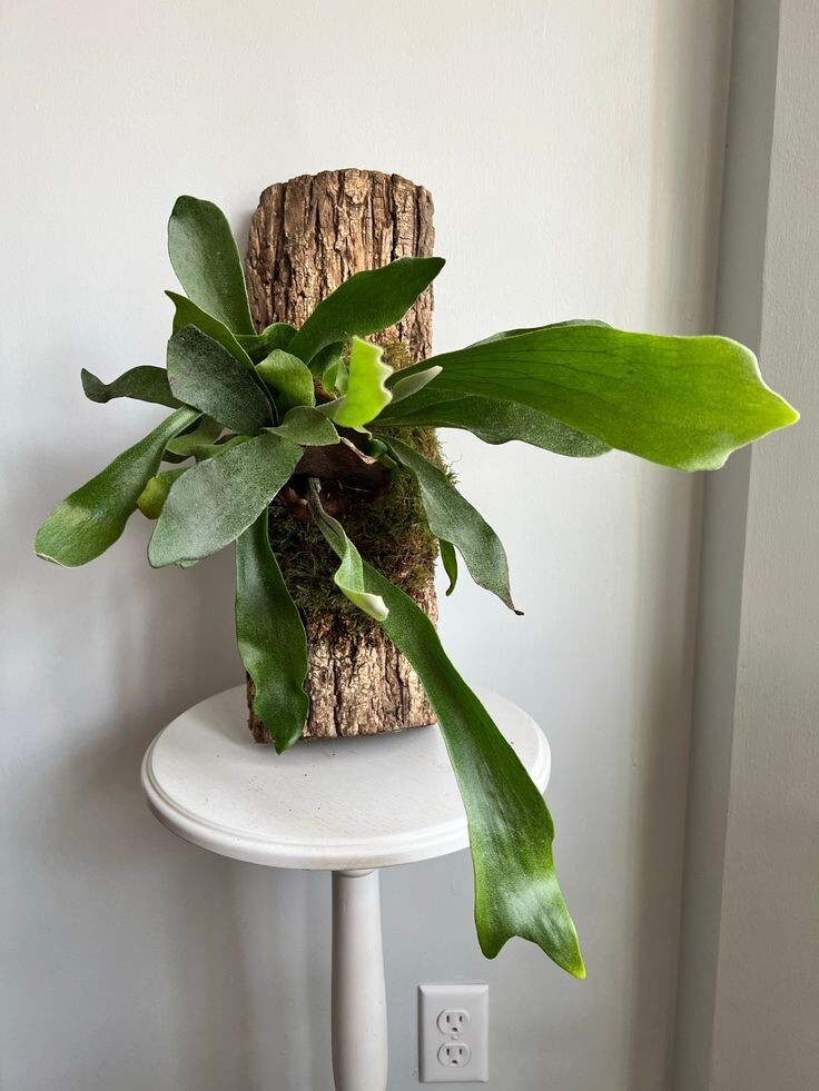 Со временем я решила переселить его на деревянную дощечку с мхом, и он быстро вернулся к жизни. Сделала вывод, что эти растения лучше себя чувствуют на конструкции из дерева или коры, этот способ выращивания естественней для Платицериума, так как в природе они обитают на стволах деревьев.
