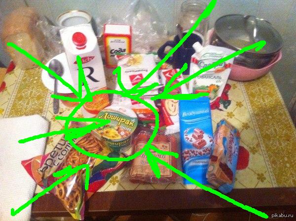 Купить довольно дорогой и ненужный сок и шоколад..на эти деньги можно было грамм 400 фарша взять, 2 тарелки супа с фрикадельками лучше чем доширак и куча ролтона
