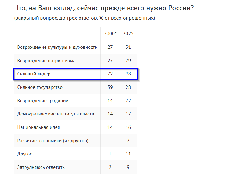 VitSch Что, на Ваш взгляд, сейчас прежде всего нужно России? 2 месяца назад Такой опрос провел ВЦИОМ выделил я источник: https://wciom.ru/analytical-reviews/analiticheskii-obzor/put... Политика Опрос ВЦИОМ Лидер 3 2 Ещё 0