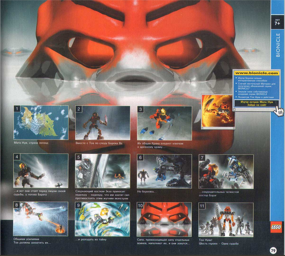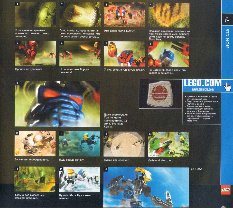 На просторах интернета русского каталога Лего за 2003 года, с презентацией Борок-Калов и Ракши я не нашел, хотя уверен, что они были. Каталог за первое полугодие 2003 года у меня был, и если я его найду, в дальнейшем, скрины с историей противостояние Тоа Нува и Борок-калов я приложу.