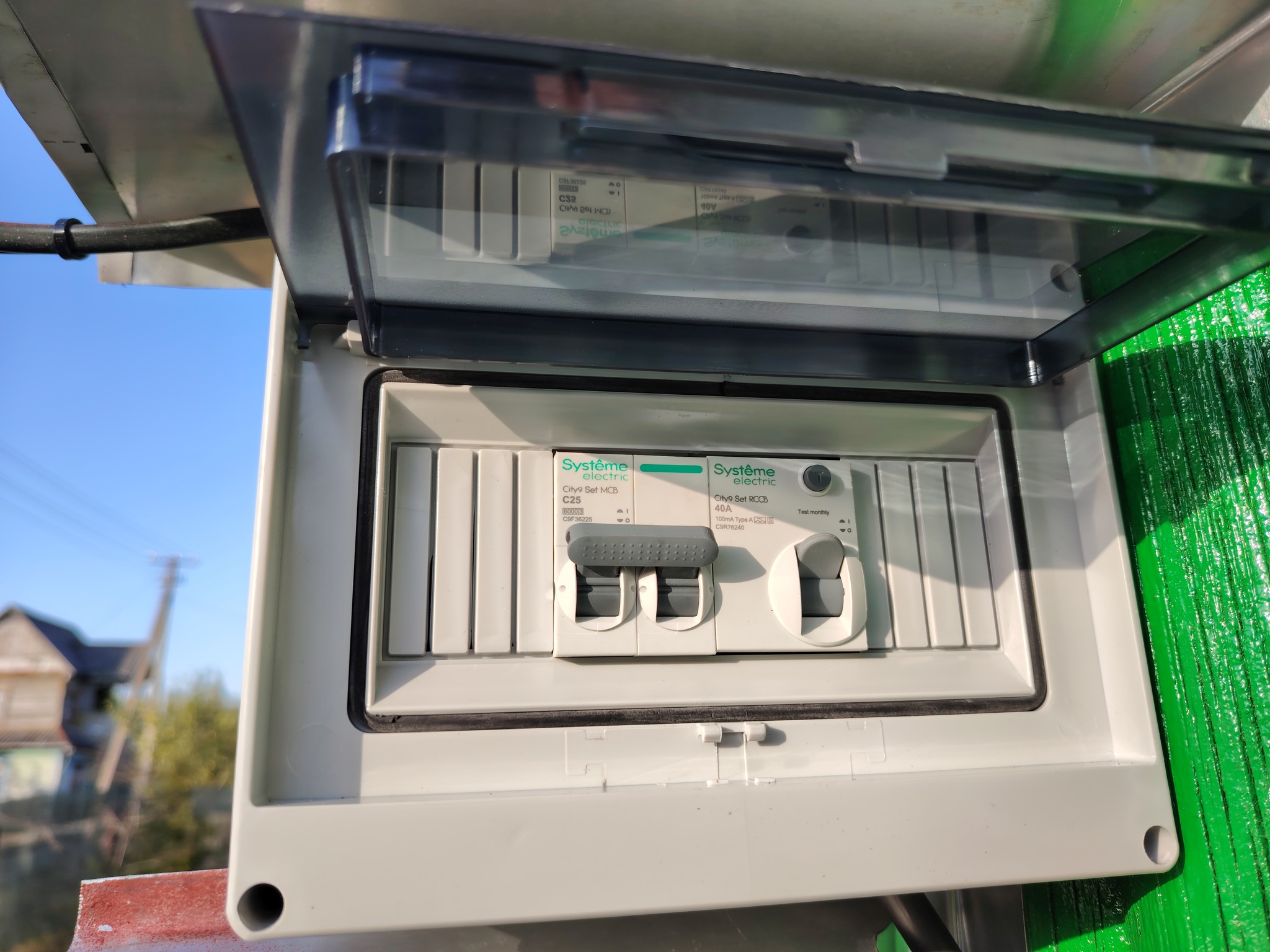 А вот ещё пример, дачный вводной щиток, установлен на фасаде:
