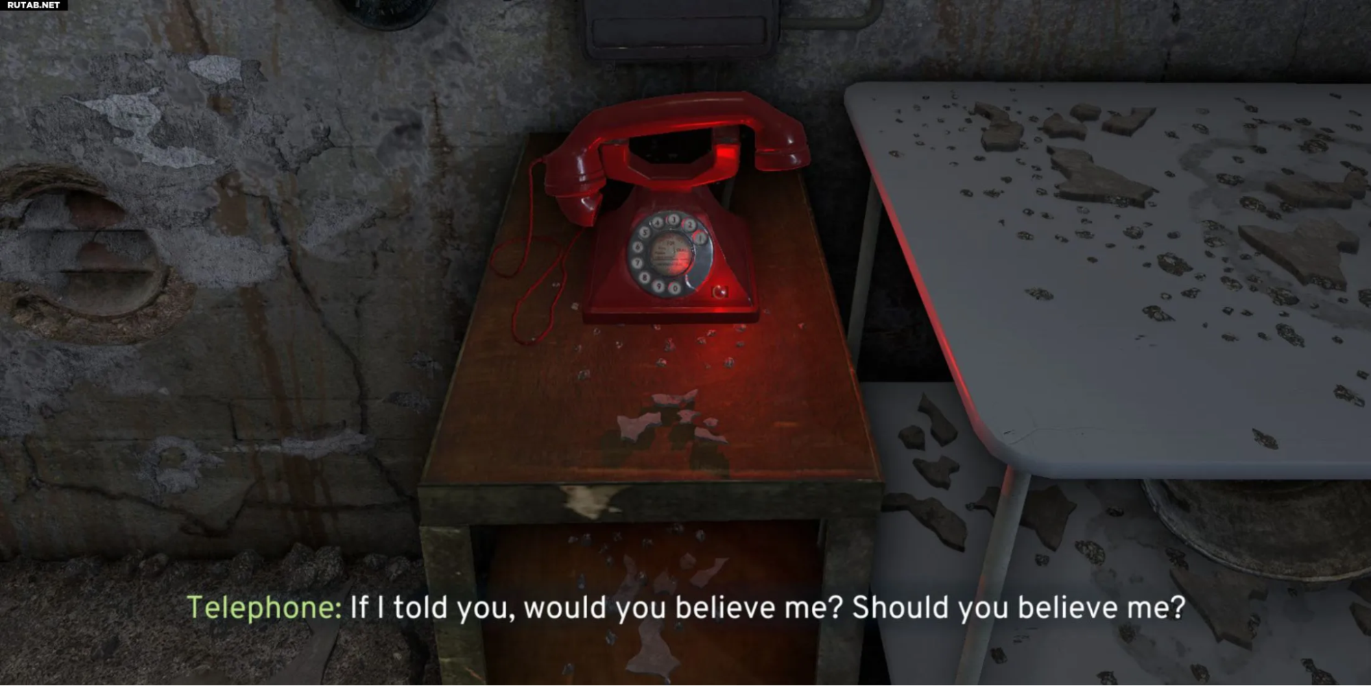 В бункере никто не узнает героя — он явно посторонний, каким-то образом помещенный в это запечатанное пространство. Наиболее вероятная версия — за это отвечает таинственный Голос по телефону, ведь концовка возвращает игрока в начальную комнату. Но если Голос не человек, что тогда?