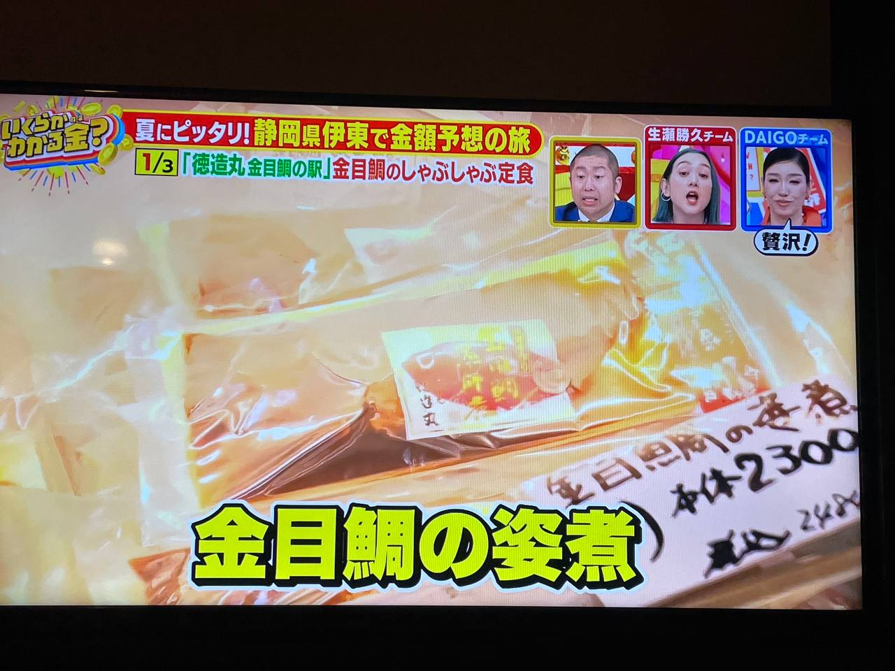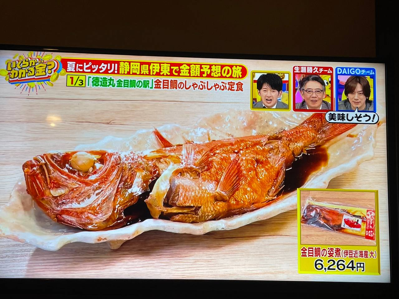 Это какое-то кулинарное шоу. Ведущий ходит по ресторанам и каким-то рынкам, что-то пробует, а гости в студии эмоционально реагируют. Кстати, вот эта рыба стоит 6264 йены - это 3400 рублей. О как!