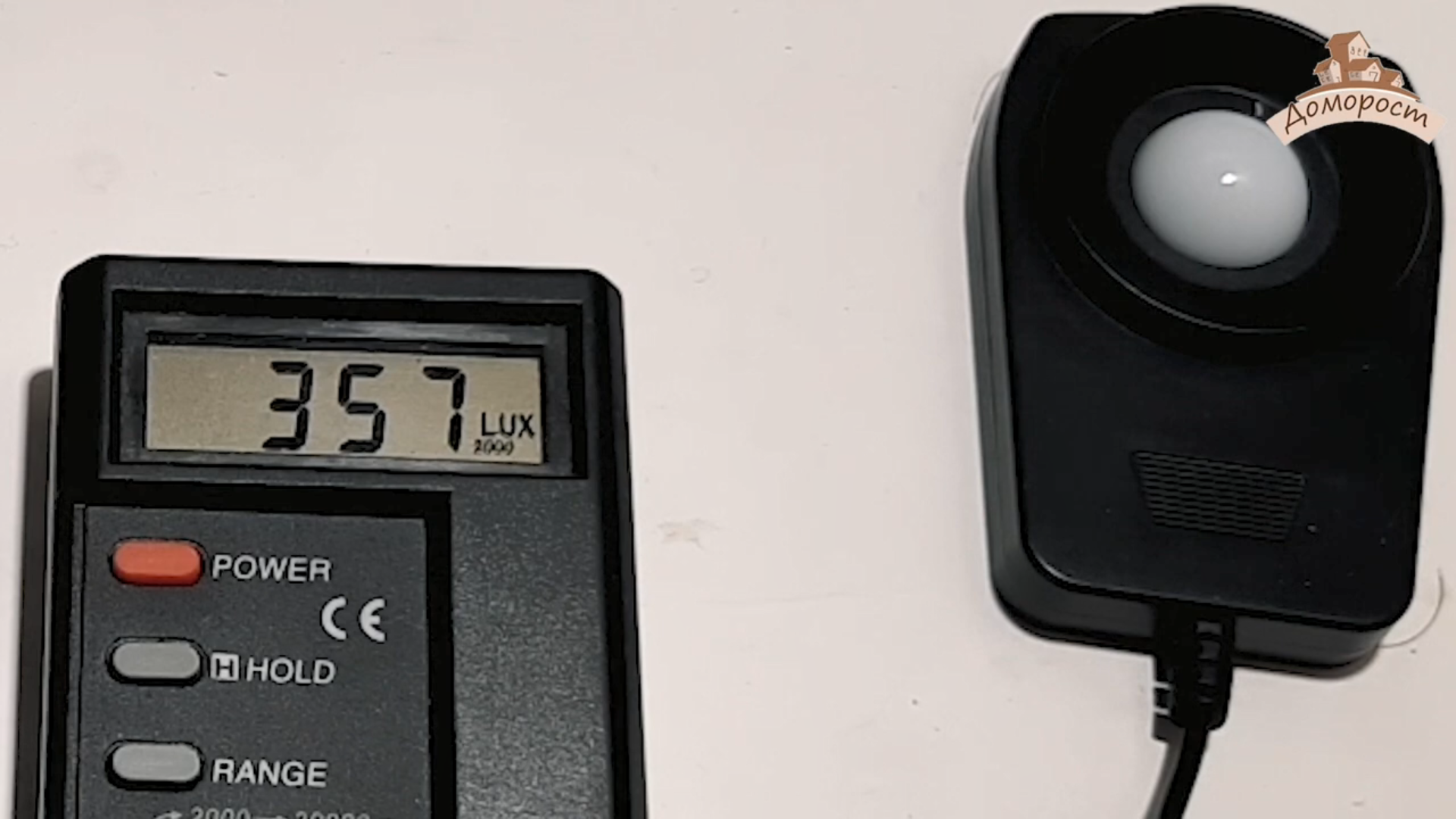 Настало время померить освещенность от лампы. Лампочка расположена в метре над плоскостью стола, прямо под ней расположен люксметр. Итак, при 220 Вольтах на входе, освещенность равна 360 Люкс. При изменении напряжения до 250 Вольт освещенность не меняется. А если упадет до 170 Вольт? Нет — ничего не меняется, 357 Люкс на приборе. Очень хорошо, лампа является устойчивой к изменению напряжения в сети. Если же хотите посмотреть этот тест на видео, то прикрепляю ссылку на ютуб: