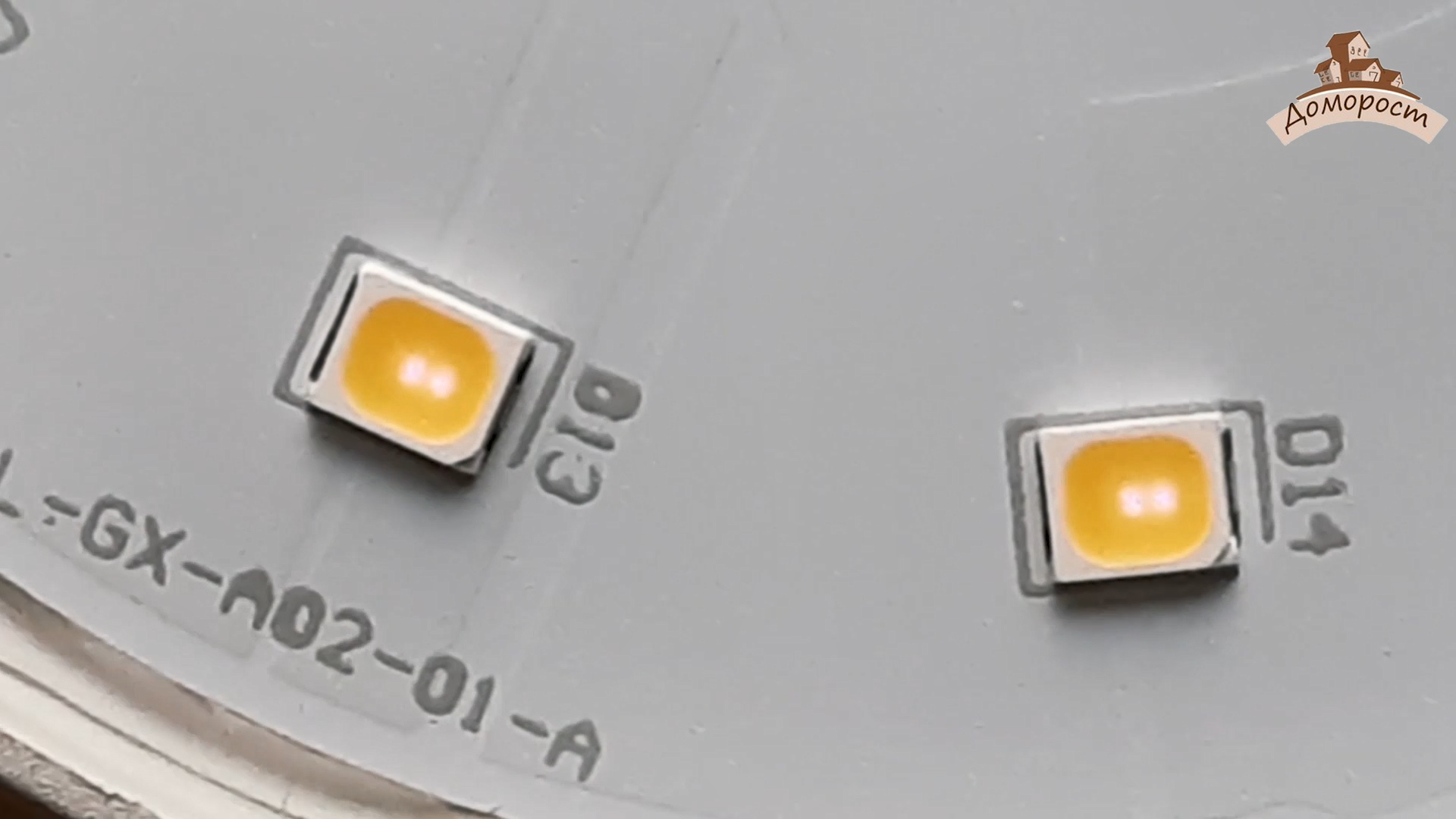 При более близком рассмотрении в каждом корпусе светодиода явно просматривается пара кристаллов.