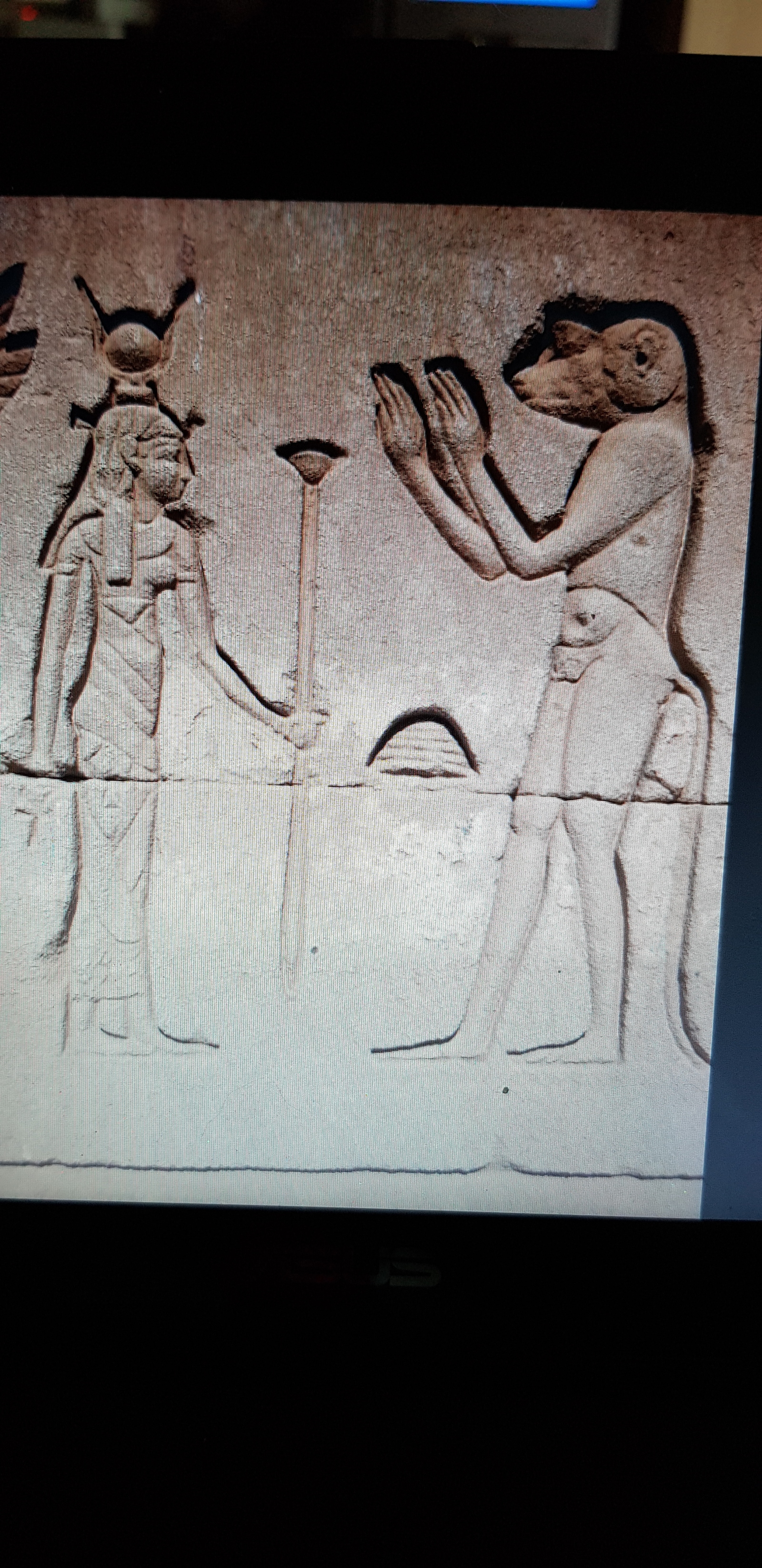 «Храм Хонсу». Хонсу — сын Амона и Мут, Лунный бог, имя которого переводится как «странник», изображается в виде мумифицированной фигуры младенца, иногда с головой сокола, держащего в руках скипетр и плеть. На голове – заплетенный локон юности и убор в виде серпа и полного диска луны. Подобно Тоту, также связанному с луной, Хонсу мог изображаться в облике павиана. Изначально Хонсу почитался как божество, связанное с деторождением.
