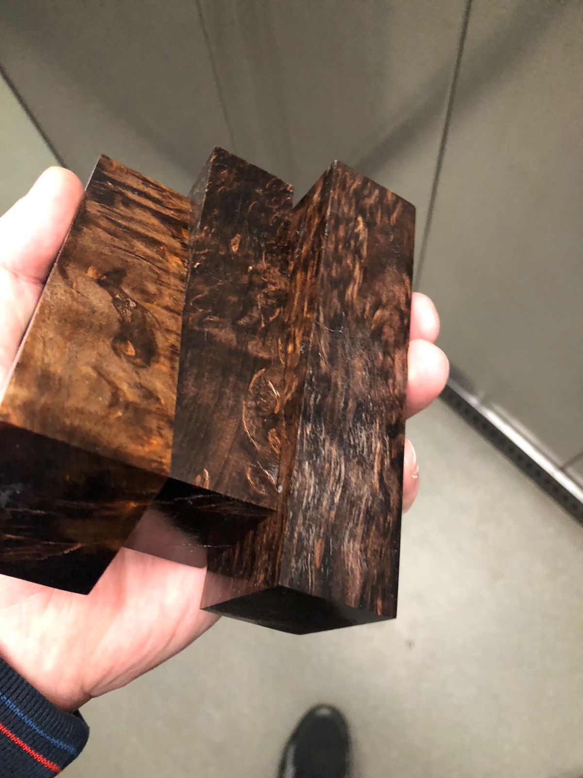 Согласовав с заказчиком, достаем из запасов бруски стабилизированной карельской березы с красивым цветом и рисунком.