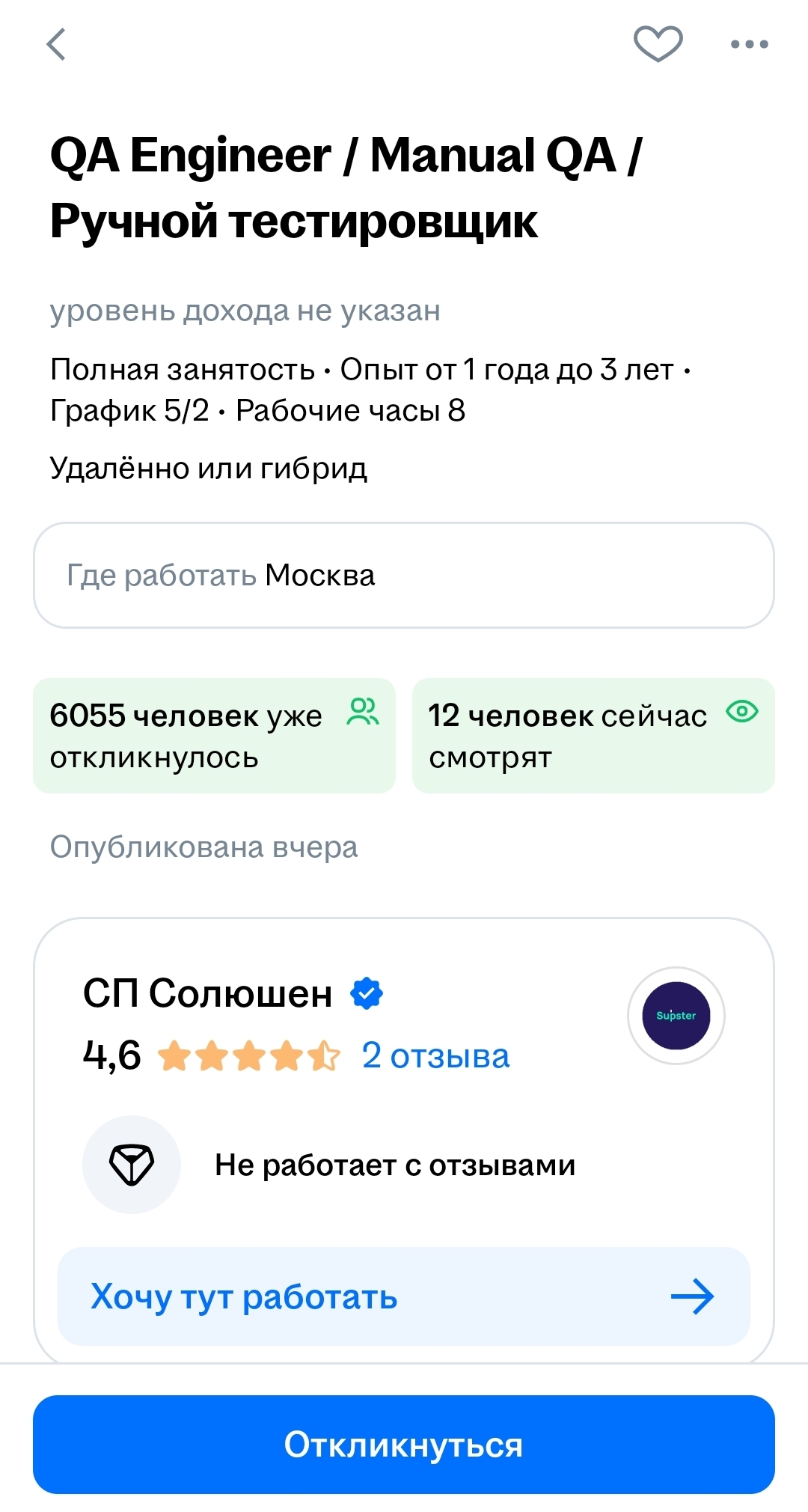 И так какую вакансию ты бы не смотрел (именно за профессии в it говорю), там перманентный пиздец. Даже в Колл центр в тинек, на оператора тех. Поддержки 24000 мать его, отклика!!! (Реально видел, к сожалению не могу сейчас найти вакансию что бы заскринить)