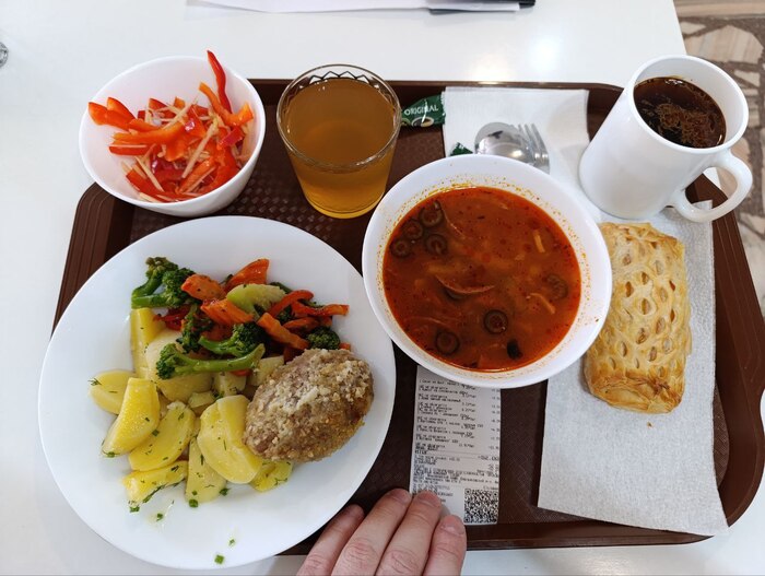 В столовой 2 купона на 450 руб. каждый. Вполне хватает чтобы наесться. (только 50 руб. доплатил)