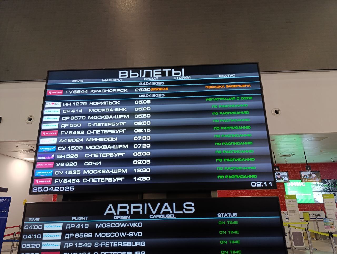 Благополучно прилетаем в Красноярск. Нас там уже встречают. Тем, у кого стыковочные рейсы сразу заменяют билеты и выдают ваучер на бесплатное жилье и еду.