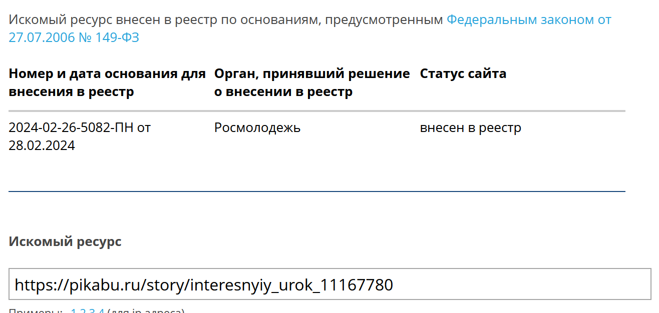 Удивление от скорости занесения в Роскомнадзор.