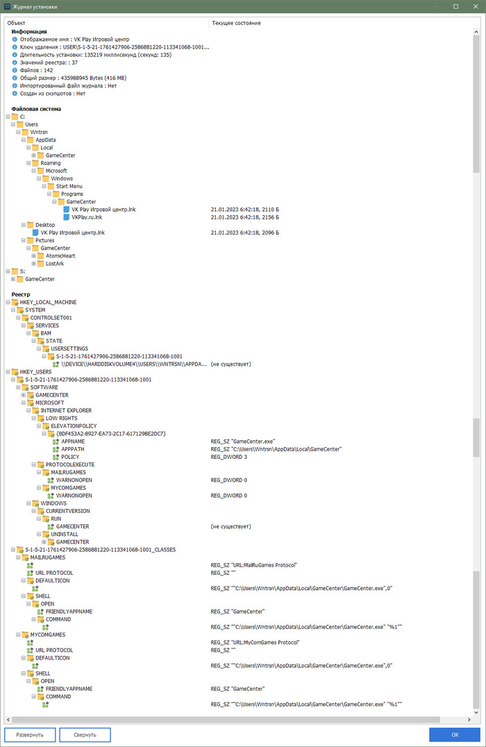 Журнал до - после установки собирал через Ashampoo Uninstaller.