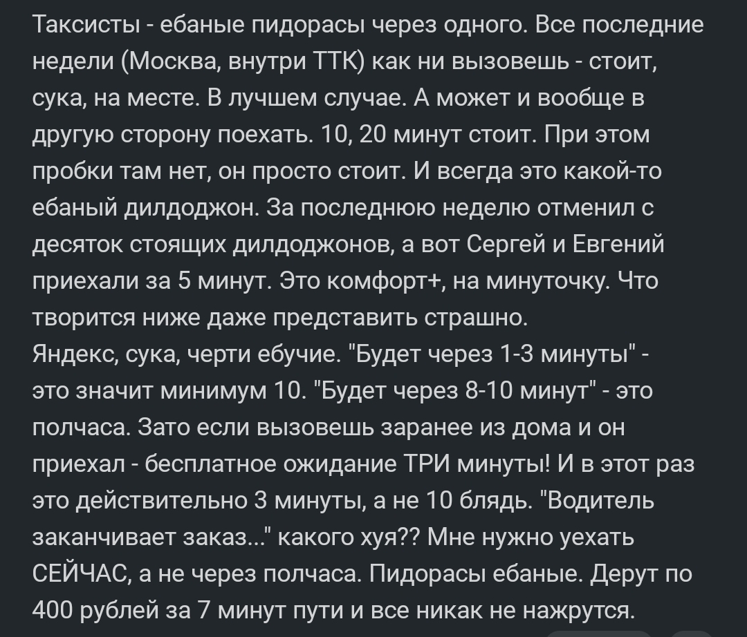 Мне вот интересно, а почему таксисты считают, что им надо зарабатывать, а остальным нет?